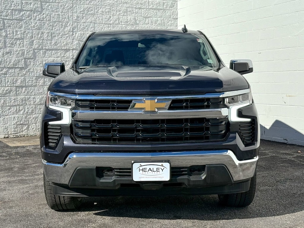 Dark Ash Metallic 2022 Chevrolet Silverado 1500 LT 4WD 8-Speed Automatic 2.7L Turbo 8-Speed Automatic, 4WD, Black Cloth, 10-Way Power Driver Seat w/Lumbar, 12.3 Multicolor Reconfigurable Digital Display, 120-Volt Bed Mounted Power Outlet, 120-Volt Instrument Panel Power Outlet, 3.42 Rear Axle Ratio, 4-Wheel Disc Brakes, 40/20/40 Front Split-Bench Seat, 6 Speakers, 6-Speaker Audio System, ABS brakes, Air Conditioning, All-Star Edition, Alloy wheels, AM/FM radio: SiriusXM with 360L, Apple CarPlay/Android Auto, Auto High-beam Headlights, Auto-Locking Rear Differential, Automatic Emergency Braking, Automatic temperature control, Bluetooth® For Phone, Brake assist, Bumpers: chrome, Chevrolet Connected Access Capable, Chrome Mirror Caps, Cloth Seat Trim, Color-Keyed Carpeting Floor Covering, Compass, Convenience Package, Deep-Tinted Glass, Delay-off headlights, Driver door bin, Driver vanity mirror, Dual front impact airbags, Dual front side impact airbags, Dual Rear USB Ports (Charge Only), Dual-Zone Automatic Climate Control, Electric Rear-Window Defogger, Electrical Steering Column Lock, Electronic Cruise Control, Electronic Stability Control, Following Distance Indicator, Forward Collision Alert, Front anti-roll bar, Front Center Armrest w/Storage, Front dual zone A/C, Front Frame-Mounted Black Recovery Hooks, Front License Plate Kit, Front Pedestrian Braking, Front reading lights, Front wheel independent suspension, Fully automatic headlights, HD Rear Vision Camera, Heated door mirrors, Heated Driver & Front Outboard Passenger Seats, Heated front seats, Heated Steering Wheel, Heated steering wheel, High Capacity Suspension Package, Hitch Guidance, Illuminated entry, IntelliBeam Automatic High Beam On/Off, Keyless Open & Start, Lane Keep Assist w/Lane Departure Warning, Leather Wrapped Steering Wheel, LED Cargo Area Lighting, Low tire pressure warning, Manual Tilt/Telescoping Steering Column, Not Equipped w/Steering Column Lock, Occupant sensing airbag, OnStar & Chevrolet Connected Services Capable, Outside temperature display, Overhead airbag, Overhead console, Panic alarm, Passenger door bin, Passenger vanity mirror, Power door mirrors, Power driver seat, Power Front Windows w/Driver Express Up/Down, Power Front Windows w/Passenger Express Down, Power Rear Windows w/Express Down, Power steering, Power windows, Premium audio system: Chevrolet Infotainment 3 Premium, Radio data system, Radio: Chevrolet Infotainment 3 Premium System, Rear 60/40 Folding Bench Seat (Folds Up), Rear reading lights, Rear step bumper, Rear window defroster, Remote keyless entry, Remote Vehicle Starter System, Security system, SiriusXM w/360L, Speed control, Speed-sensing steering, Split folding rear seat, Standard Suspension Package, Steering Wheel Audio Controls, Steering wheel mounted audio controls, Tachometer, Telescoping steering wheel, Theft Deterrent System (Unauthorized Entry), Tilt steering wheel, Traction control, Trailering Package, Trip computer, Variably intermittent wipers, Voltmeter, Wheels: 18 x 8.5 Bright Silver Painted Aluminum, Wheels: 20 x 9 Painted Aluminum, Wi-Fi Hot Spot Capable, Wireless Phone Projection, 8-Speed Automatic, 4WD, Black Cloth.