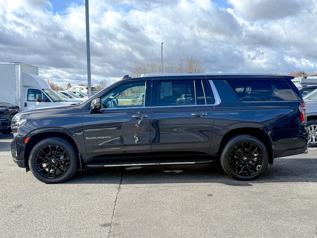 Certified. Dark Ash Metallic 2022 Chevrolet Suburban High Country 4WD 10-Speed Automatic with Overdrive EcoTec3 6.2L V8 Dual-Pane Power Panoramic Sunroof, 10 Speakers, 15 Diagonal Multi-Color Head-Up Display, 1st & 2nd Row Color-Keyed Carpeted Floor Mats, 2-Speed Active Electronic AutoTrac Transfer Case, 3.23 Rear Axle Ratio, 3rd Row 60/40 Power-Folding Split-Bench, 3rd row seats: split-bench, 4-Wheel Disc Brakes, ABS brakes, Adaptive suspension, Air Conditioning, Alloy wheels, AM/FM radio: SiriusXM with 360L, Apple CarPlay/Android Auto, Auto High-beam Headlights, Auto-dimming door mirrors, Auto-dimming Rear-View mirror, Auto-leveling suspension, Automatic Stop/Start, Automatic temperature control, Bose 10-Speaker Surround w/CenterPoint, Brake assist, Bright Front & Rear Door Sill Plates, Bumpers: body-color, Chrome Door Handles w/Body-Color Strip, Color-Keyed Carpeting Floor Covering, Compass, Delay-off headlights, Driver & Front Outboard Passenger Airbags, Driver door bin, Driver vanity mirror, Dual Exhaust System, Dual front impact airbags, Dual front side impact airbags, Electronic Stability Control, Emergency communication system: OnStar and Chevrolet connected services capable, Enhanced Driver Information Center, Floor Console, Four wheel independent suspension, Front & Rear Park Assist, Front anti-roll bar, Front Bucket Seats, Front Center Armrest, Front dual zone A/C, Front reading lights, Fully automatic headlights, Garage door transmitter, Hands-Free Rear Power Programmable Liftgate, HD Surround Vision, Heads-Up Display, Heated & Ventilated Driver & Front Passenger Seats, Heated 2nd Row Outboard Seats, Heated door mirrors, Heated Driver & Front Passenger Seats, Heated front seats, Heated rear seats, Heated Steering Wheel, Heated steering wheel, Hill Descent Control, Illuminated entry, Infotainment Display, Inside Rearview Auto-Dimming Rear Camera Mirror, Lane Change Alert w/Side Blind Zone Alert, Leather steering wheel, Leather-Wrapped Steering Wheel, LED Daytime Running Lamps, License Plate Front Mounting Package, Low tire pressure warning, Magnetic Ride Control Suspension, Memory seat, Memory Settings, Molded Splash Guards, Navigation System, Not Equipped w/4-Way Driver & Fr Pass Pwr Lumbar, Not Equipped w/Steering Column Lock, Occupant sensing airbag, Outside Heated Power-Adjustable Mirrors, Outside temperature display, Overhead airbag, Overhead console, Panic alarm, Passenger door bin, Passenger vanity mirror, Perforated Leather Seating Surfaces, Power door mirrors, Power driver seat, Power Liftgate, Power passenger seat, Power Release 2nd Row Bucket Seats, Power steering, Power Tilt & Telescopic Steering Column, Power windows, Preferred Equipment Group 3LZ, Premium audio system: Chevrolet Infotainment 3 Premium, Radio: Chevrolet Infotainment 3 Premium System, Rain sensing wipers, Rear air conditioning, Rear anti-roll bar, Rear Camera Mirror Washer, Rear Cross Traffic Alert, Rear Pedestrian Alert, Rear reading lights, Rear window defroster, Rear window wiper, Remote keyless entry, Remote Start, Roof rack: rails only, Safety Alert Seat, Security system, SiriusXM Radio w/360L, Speed control, Speed-sensing steering, Split folding rear seat, Spoiler, Start/Stop System Disable Button, Steering wheel memory, Steering wheel mounted audio controls, Tachometer, Telescoping steering wheel, Tilt steering wheel, Traction control, Trip computer, Turn signal indicator mirrors, Universal Home Remote, Variably intermittent wipers, Ventilated front seats, Voltmeter, Wheel Locks (Set of 4) (LPO), Wheels: 22 Multi-Spoke Gloss Black (LPO) (SRV), Wheels: 22 Steel (LPO), Wheels: 22 x 9 Sterling Silver Premium Painted, Wireless Charging, One Owner, Dual-Pane Power Panoramic Sunroof.