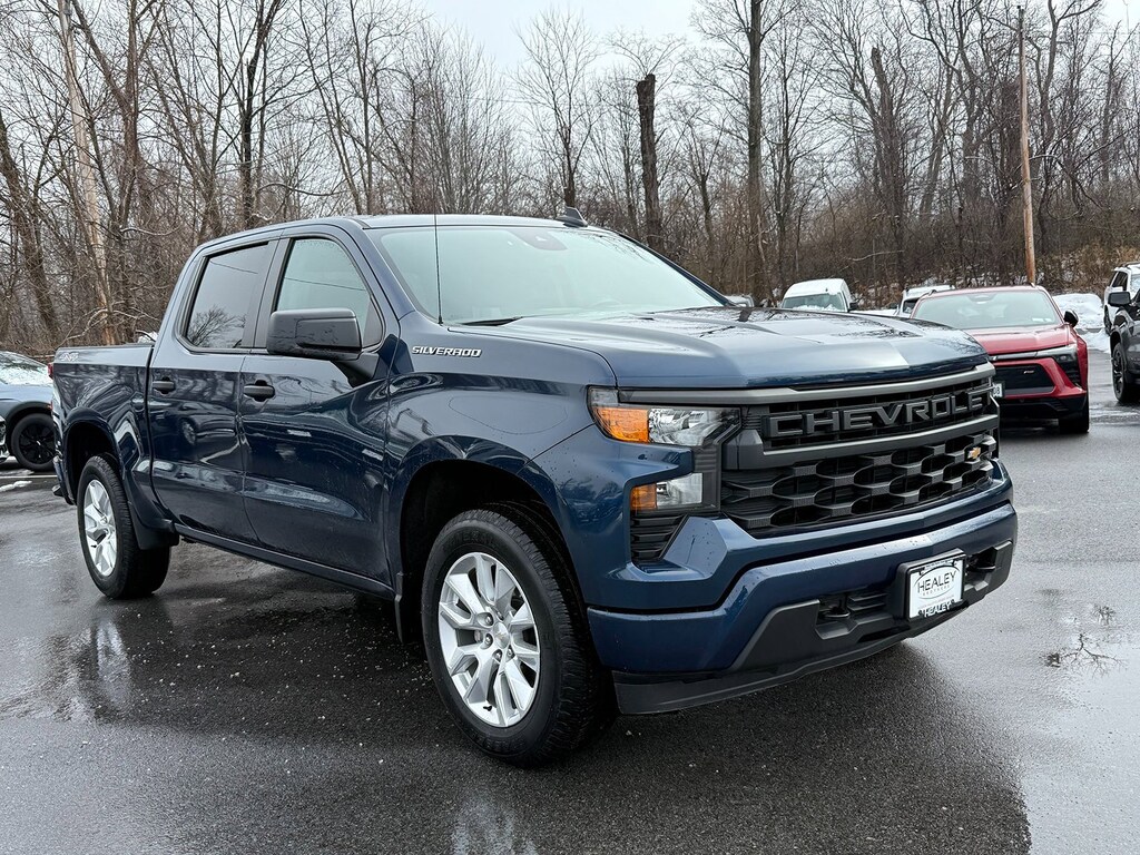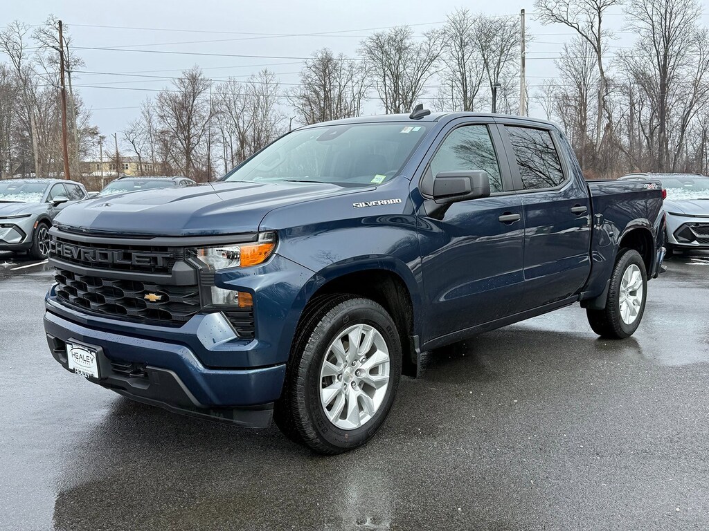 Certified. Northsky Blue Metallic 2023 Chevrolet Silverado 1500 Custom 4WD 8-Speed Automatic 2.7L Turbo 10-Way Power Driver Seat w/Lumbar, 120-Volt Bed Mounted Power Outlet, 120-Volt Instrument Panel Power Outlet, 3.42 Rear Axle Ratio, 3.5 Monochromatic Display Driver Info Center, 4-Wheel Disc Brakes, 40/20/40 Front Split-Bench Seat, 6 Speakers, 6-Speaker Audio System, ABS brakes, Air Conditioning, Alloy wheels, AM/FM radio: SiriusXM, Apple CarPlay/Android Auto, Auto High-beam Headlights, Automatic Emergency Braking, Bluetooth® For Phone, Brake assist, Bumpers: body-color, Chevrolet Connected Access Capable, Chevytec Spray-On Black Bedliner, Cloth Rear Seat w/Storage Package, Cloth Seat Trim, Color-Keyed Carpeting Floor Covering, Compass, Custom Convenience Package, Custom Value Package, Deep-Tinted Glass, Delay-off headlights, Driver door bin, Driver vanity mirror, Dual front impact airbags, Dual front side impact airbags, Dual Rear USB Ports (Charge Only), Electric Rear-Window Defogger, Electrical Steering Column Lock, Electronic Cruise Control, Electronic Stability Control, EZ Lift Power Lock & Release Tailgate, Following Distance Indicator, Forward Collision Alert, Front anti-roll bar, Front Center Armrest w/Storage, Front Frame-Mounted Black Recovery Hooks, Front License Plate Kit, Front Pedestrian Braking, Front reading lights, Front Rubberized Vinyl Floor Mats, Front wheel independent suspension, Fully automatic headlights, HD Rear Vision Camera, Heated door mirrors, High Capacity Suspension Package, Hitch Guidance, Illuminated entry, Integrated Trailer Brake Controller, IntelliBeam Automatic High Beam On/Off, Lane Keep Assist w/Lane Departure Warning, LED Cargo Area Lighting, Low tire pressure warning, Manual Tilt Wheel Steering Column, Not Equipped w/Rear USB Ports, Not Equipped w/Steering Column Lock, Occupant sensing airbag, OnStar & Chevrolet Connected Services Capable, Outside temperature display, Overhead airbag, Overhead console, Panic alarm, Passenger door bin, Passenger vanity mirror, Power door mirrors, Power driver seat, Power Front Windows w/Driver Express Up/Down, Power Front Windows w/Passenger Express Down, Power Rear Windows w/Express Down, Power steering, Power windows, Preferred Equipment Group 1CX, Premium audio system: Chevrolet Infotainment 3, Radio data system, Radio: Chevrolet Infotainment 3 System, Rear 60/40 Folding Bench Seat (Folds Up), Rear reading lights, Rear Rubberized-Vinyl Floor Mats, Rear step bumper, Rear window defroster, Remote Keyless Entry, Remote keyless entry, Remote Vehicle Starter System, Security system, SiriusXM Radio, Speed control, Speed-sensing steering, Split folding rear seat, Standard Tailgate, Tachometer, Theft Deterrent System (Unauthorized Entry), Tilt steering wheel, Traction control, Trailering Package, Trip computer, Variably intermittent wipers, Voltmeter, Wheels: 20 x 9 Bright Silver Painted Aluminum, Wi-Fi Hot Spot Capable, Wireless Phone Projection.Don't be tricked by below market priced vehicles that charge exorbitant documentation and prep fees. Our pricing is fair, concise and the only documentation fee charged is $175. Check our Google reviews and allow our customers to tell you where you should consider purchasing a pre-owned vehicle in the Tri-State area. Odometer is 30303 miles below market average!Certification Program Details: Bumper-to-Bumper Limited Warranty 6-month/6,000-mile Limited Bumper-to-Bumper Warranty,* whichever comes first, in addition to any remaining original factory Bumper-to-Bumper warranty. See participating dealer and warranty booklet for limited warranty eligibility and coverage details, including limitations and exclusions. *Except for non-GM vehicles in the State of California, where coverage will be provided by a vehicle service contract.
