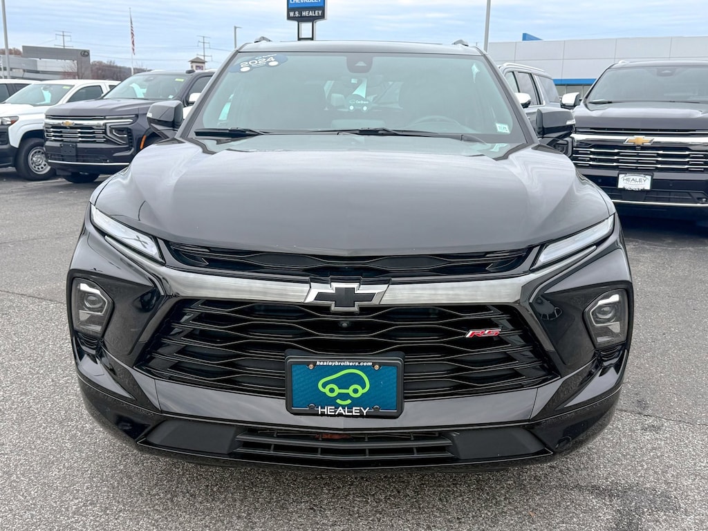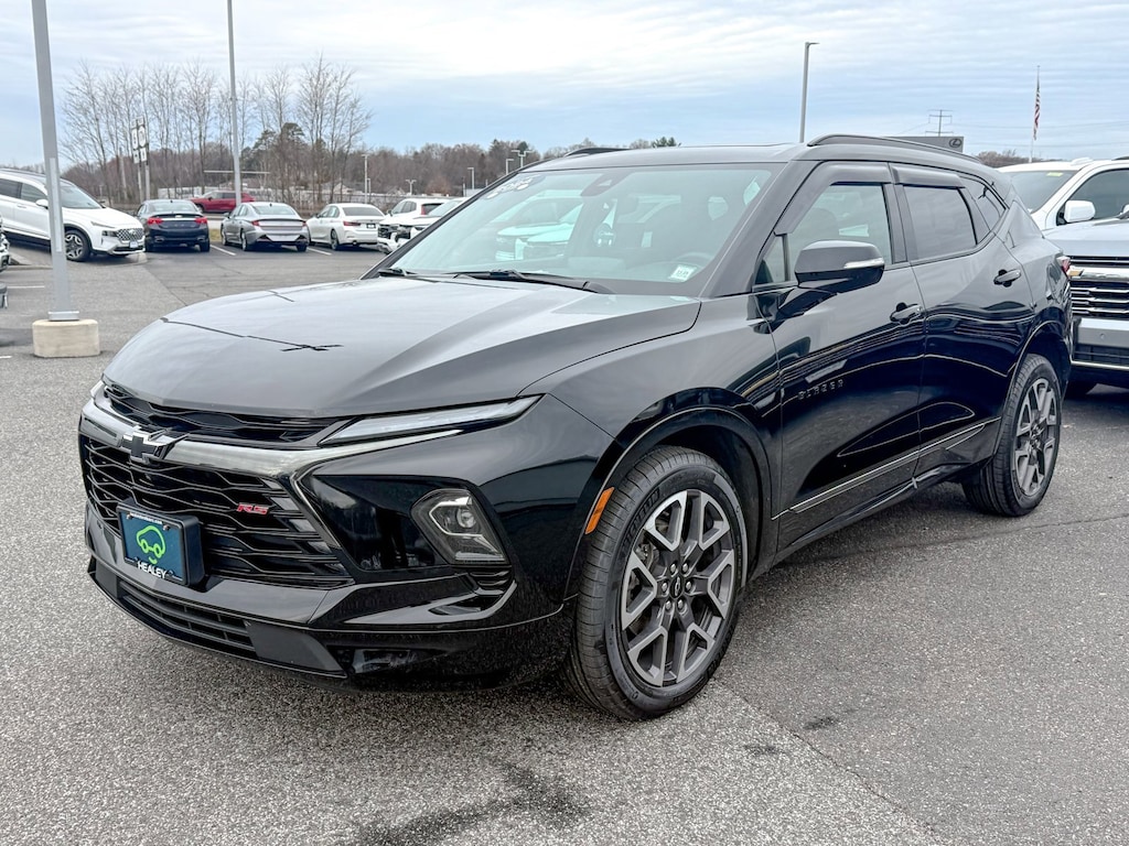 Certified. Black 2024 Chevrolet Blazer RS AWD 9-Speed Automatic with Overdrive 3.6L V6 SIDI Adaptive Cruise Control, Driver Confidence II Package, Enhanced Automatic Emergency Braking, Enhanced Convenience Package, HD Surround Vision, Heated Rear Outboard Seating Positions, Memory Settings For Driver Seat & Exterior Mirrors, Power Panoramic Tilt-Sliding Sunroof, Power Tilt & Telescoping Steering Column, Rear Camera Mirror, Safety Alert Seat, Ventilated Driver & Front Passenger Seats, 3.49 Final Drive Axle Ratio, 4-Wheel Disc Brakes, 6-Way Power Front Passenger Seat Adjuster, 8 Speakers, 8-Way Power Driver Seat Adjuster, ABS brakes, Air Conditioning, Alloy wheels, AM/FM radio: SiriusXM with 360L, Apple CarPlay/Android Auto, Auto High-beam Headlights, Auto-dimming door mirrors, Auto-dimming Rear-View mirror, Automatic temperature control, Bose Premium 8-Speaker Audio System Feature, Brake assist, Bumpers: body-color, Child-Seat-Sensing Airbag, Compass, Delay-off headlights, Driver door bin, Driver vanity mirror, Dual front impact airbags, Dual front side impact airbags, Electronic Stability Control, Emergency communication system: OnStar and Chevrolet connected services capable, Four wheel independent suspension, Front anti-roll bar, Front Bucket Seats, Front Center Armrest, Front dual zone A/C, Front reading lights, Fully automatic headlights, Garage door transmitter, Heated door mirrors, Heated Driver & Front Passenger Seats, Heated front seats, Heated Steering Wheel, Heated steering wheel, Illuminated entry, Knee airbag, Leather Shift Knob, Leather steering wheel, Low tire pressure warning, Navigation System, Occupant sensing airbag, Outside temperature display, Overhead airbag, Overhead console, Panic alarm, Passenger door bin, Passenger vanity mirror, Perforated Leather-Appointed Seat Trim, Power door mirrors, Power Driver Lumbar Control, Power driver seat, Power Liftgate, Power passenger seat, Power steering, Power windows, Preferred Equipment Group 1RS, Premium audio system: Chevrolet Infotainment 3 Premium, Radio data system, Radio: Chevrolet Infotainment 3 Premium System, Rear anti-roll bar, Rear Camera Mirror Washer, Rear reading lights, Rear seat center armrest, Rear window defroster, Rear window wiper, Remote keyless entry, Ride & Handling Suspension, Security system, SiriusXM w/360L, Speed control, Speed-sensing steering, Split folding rear seat, Spoiler, Steering wheel mounted audio controls, Tachometer, Telescoping steering wheel, Tilt steering wheel, Traction control, Trip computer, Turn signal indicator mirrors, Variably intermittent wipers, Voltmeter, Wheels: 20 Technical Gray Aluminum, One Owner, Adaptive Cruise Control, Driver Confidence II Package, Enhanced Automatic Emergency Braking, Enhanced Convenience Package, HD Surround Vision, Heated Rear Outboard Seating Positions, Memory Settings For Driver Seat & Exterior Mirrors, Power Panoramic Tilt-Sliding Sunroof, Power Tilt & Telescoping Steering Column, Rear Camera Mirror, Safety Alert Seat, Ventilated Driver & Front Passenger Seats.