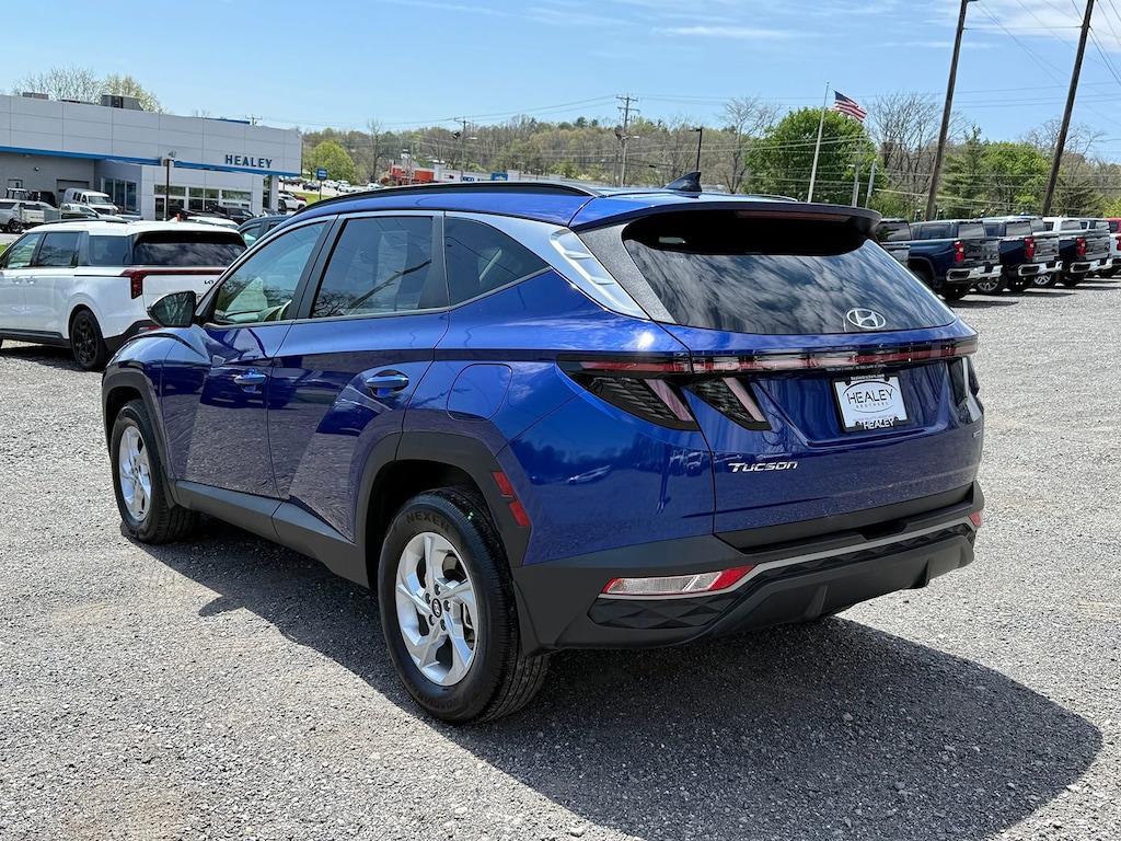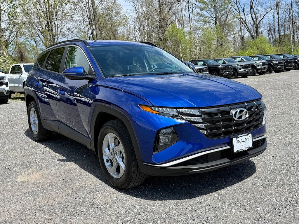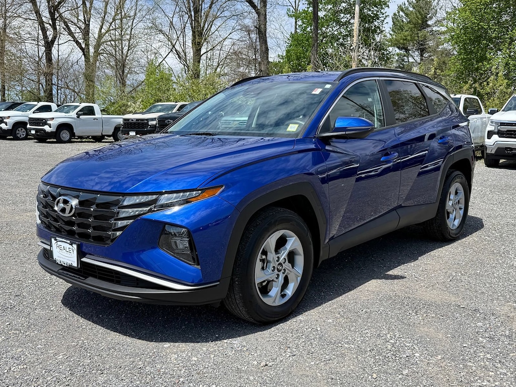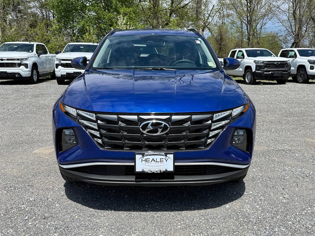 Certified. Intense Blue 2023 Hyundai Tucson SEL AWD 8-Speed Automatic with SHIFTRONIC 2.5L I4 DGI DOHC 16V LEV3-ULEV70 187hp 3.648 Axle Ratio, 4-Wheel Disc Brakes, 6 Speakers, ABS brakes, Air Conditioning, Alloy wheels, AM/FM radio: SiriusXM, Apple CarPlay & Android Auto, Auto High-beam Headlights, Brake assist, Bumpers: body-color, Cargo Net, Cargo Tray, Carpeted Floor Mats, Delay-off headlights, Driver door bin, Driver vanity mirror, Dual front impact airbags, Dual front side impact airbags, Electronic Stability Control, Emergency communication system: Blue Link Connected Car Service (3-year complimentary subscription), First Aid Kit, Four wheel independent suspension, Front and Rear Mudguards, Front anti-roll bar, Front Bucket Seats, Front Center Armrest, Front reading lights, Fully automatic headlights, H-Tex Seat Trim, Heated door mirrors, Heated Front Bucket Seats, Heated front seats, Illuminated entry, Low tire pressure warning, Occupant sensing airbag, Option Group 01, Outside temperature display, Overhead airbag, Overhead console, Panic alarm, Passenger door bin, Passenger vanity mirror, Power door mirrors, Power driver seat, Power Liftgate, Power steering, Power windows, Radio data system, Radio: AM/FM/HD/SiriusXM Audio System, Rear anti-roll bar, Rear Bumper Applique, Rear seat center armrest, Rear window defroster, Rear window wiper, Remote keyless entry, Roof rack: rails only, Security system, Speed control, Split folding rear seat, Spoiler, Stain & Odor Resistant Cloth Seat Trim, Steering wheel mounted audio controls, Tachometer, Telescoping steering wheel, Tilt steering wheel, Traction control, Trip computer, Turn signal indicator mirrors, Variably intermittent wipers, Wheel Locks, Wheels: 17 x 7.0J Alloy.