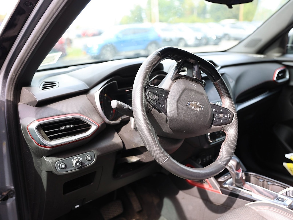 Satin Steel Metallic 2022 Chevrolet TrailBlazer RS AWD 9-Speed Automatic 1.3L Ecotec Turbo DOHC SIDI w/VVT 2-Way Power Driver Lumbar Seat Adjuster, 3.17 Axle Ratio, 4-Way Manual Front Passenger Seat Adjuster, 4-Wheel Disc Brakes, 6 Speakers, 6-Speaker Audio System Feature w/Amplifier, 8-Way Power Driver Seat Adjuster, ABS brakes, Air Conditioning, Alloy wheels, AM/FM radio: SiriusXM, Auto High-beam Headlights, Brake assist, Bumpers: body-color, Cloth w/Leatherette Seat Trim, Compass, Delay-off headlights, Driver door bin, Driver vanity mirror, Dual front impact airbags, Dual front side impact airbags, Electronic Stability Control, Emergency communication system: OnStar and Chevrolet connected services capable, Exterior Parking Camera Rear, Flat-Folding Front Passenger Seatback, Front anti-roll bar, Front Bucket Seats, Front Center Armrest, Front fog lights, Front License Plate Bracket, Front reading lights, Front wheel independent suspension, Fully automatic headlights, Heated door mirrors, Heated Driver & Front Passenger Seats, Heated front seats, Heated Steering Wheel, Heated steering wheel, Illuminated entry, Knee airbag, Leather Shift Knob, Leather steering wheel, Low tire pressure warning, Mosaic Black Metallic Two-Tone Roof, Occupant sensing airbag, Overhead airbag, Overhead console, Panic alarm, Passenger door bin, Passenger vanity mirror, Power door mirrors, Power driver seat, Power steering, Power windows, Preferred Equipment Group 1RS, Radio data system, Radio: Chevrolet Infotainment 3 System, Rear seat center armrest, Rear side impact airbag, Rear window defroster, Rear window wiper, Remote keyless entry, Ride & Handling Suspension, Roof rack: rails only, Security system, SiriusXM Radio, Speed control, Split folding rear seat, Spoiler, Steering wheel mounted audio controls, Tachometer, Telescoping steering wheel, Tilt steering wheel, Traction control, Trip computer, Variably intermittent wipers, Wheels: 18 High Gloss Black Machined Aluminum, Wireless Apple CarPlay/Android Auto.