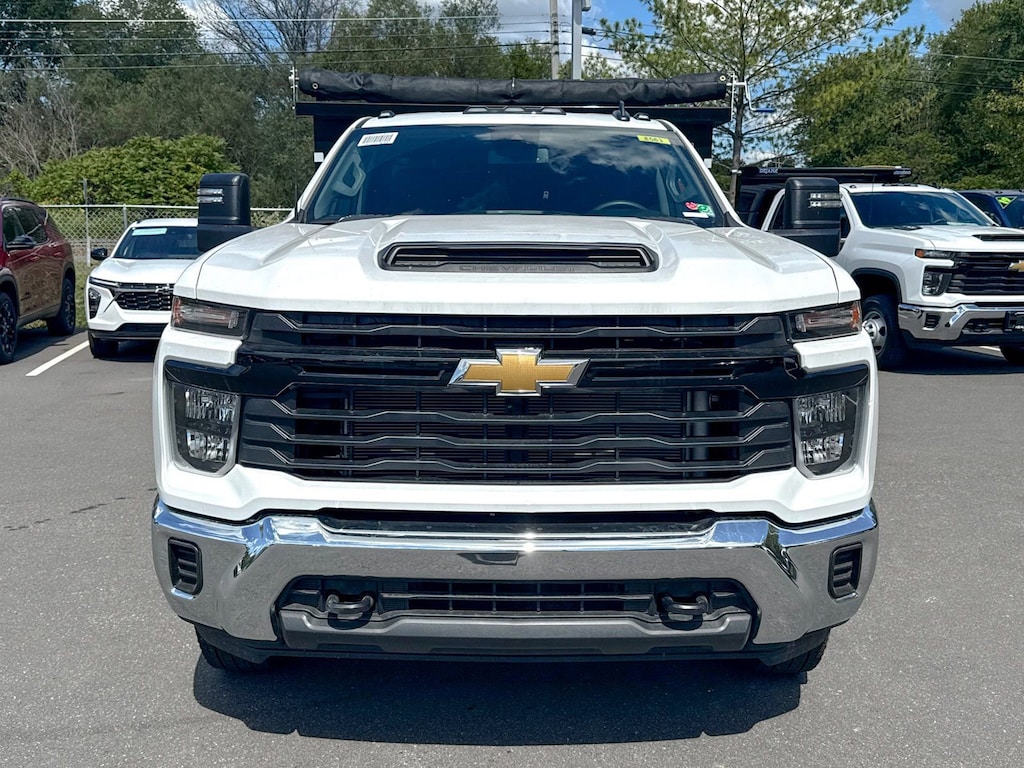 Summit White 2025 Chevrolet Silverado 3500HD Work Truck 4WD 10-Speed Automatic 6.6L V8 120-Volt (400 Watts) Interior Power Outlet, 17 Painted Steel Wheels, 170 Amp Alternator, 18 Painted Steel Wheels, 2 Speakers, 2-Speaker Audio System Feature, 2-Speed Electronic Shift Transfer Case, 220 Amp Alternator, 3.5 Diagonal Monochromatic Display DIC, 3.73 Rear Axle Ratio, 4-Way Manual Driver Seat Adjuster, 4-Way Manual Passenger Seat Adjuster, 4-Wheel Disc Brakes, 700 Cold-Cranking Amps/70 Amp-hr Auxiliary Battery, ABS brakes, Air Conditioning, AM/FM radio, Auto High-beam Headlights, Auto-Dimming Inside Rear-View Mirror, Black Front Bumper, Black Mirror Caps, Bluetooth® For Phone, Brake assist, Compass, Compass Located In Instrument Cluster, Deep-Tinted Glass, Delay-off headlights, Driver door bin, Dual front impact airbags, Dual front side impact airbags, Dual rear wheels, Electric Rear-Window Defogger, Electronic Stability Control, Front 40/20/40 Split-Bench Seat, Front anti-roll bar, Front Center Armrest w/Storage, Front Chrome Bumper, Front Grille Bar w/Black Mesh Inserts, Front License Plate Kit, Front reading lights, Front wheel independent suspension, Fully automatic headlights, Heavy-Duty 80 Amp-Hr Battery, Illuminated entry, Low tire pressure warning, Manual Tilt Inside Rearview Mirror, Manual Tilt-Wheel Steering Column, Occupant sensing airbag, OnStar Services Capable, Outside temperature display, Overhead airbag, Overhead console, Panic alarm, Passenger door bin, Passenger vanity mirror, Power steering, Power windows, Power-Adjustable Outside Mirrors, Preferred Equipment Group 1WT, Radio: Chevrolet Infotainment 3 System, Remote keyless entry, Rubberized-Vinyl Floor Covering, SiriusXM Trial Subscription, Snow Plow Prep Package, Solar Absorbing Tinted Glass, Speed control, Steering Wheel Mounted Electronic Cruise Control, Suspension Package, Tachometer, Tilt steering wheel, Traction control, Trip computer, Upfitter Switch Kit (5), Variably intermittent wipers, Vinyl Seat Trim, Voltmeter, WT Convenience Package.