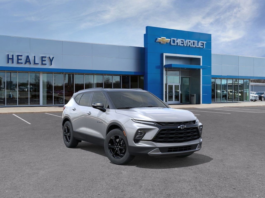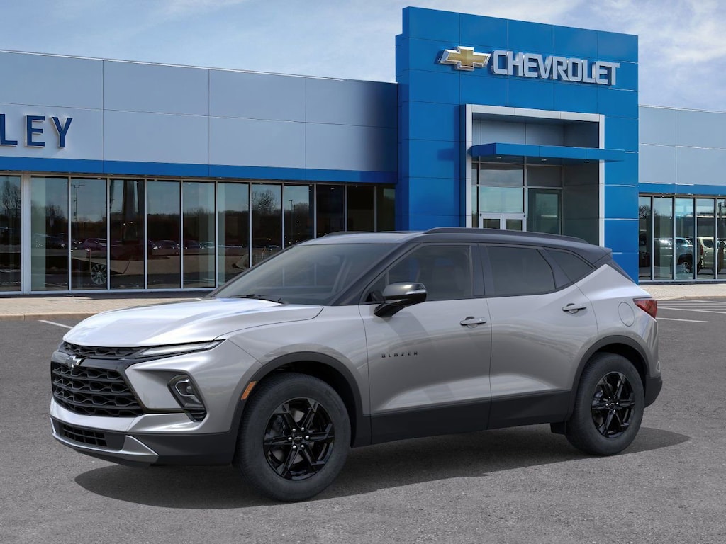 Sterling Gray Metallic 2026 Chevrolet Blazer LT AWD 9-Speed Automatic with Overdrive 2.0L Turbocharged 1st and 2nd Row All-Weather Floor Liners, 3.47 Final Drive Ratio, 4-Wheel Disc Brakes, 6 Speakers, 6-Speaker Audio System Feature, 6-Way Power Front Passenger Seat Adjuster, 8-Way Power Driver Seat Adjuster, ABS brakes, Air Conditioning, Alloy wheels, AM/FM radio: SiriusXM with 360L, Apple CarPlay/Android Auto, Auto High-beam Headlights, Auto-dimming door mirrors, Auto-dimming Rear-View mirror, Automatic temperature control, Black 2-Tone Roof, Brake assist, Bumpers: body-color, Child-Seat-Sensing Airbag, Compass, Delay-off headlights, Driver door bin, Driver vanity mirror, Dual front impact airbags, Dual front side impact airbags, Electronic Stability Control, Emergency communication system: OnStar and Chevrolet connected services capable, Floor Liner Package, Four wheel independent suspension, Front and Rear Black Bowties, Front anti-roll bar, Front Bucket Seats, Front Center Armrest, Front dual zone A/C, Front reading lights, Fully automatic headlights, Garage door transmitter, Heated door mirrors, Heated Driver and Front Passenger Seats, Heated front seats, Illuminated entry, Integrated Cargo Liner, Knee airbag, Leather Shift Knob, Leather steering wheel, Low tire pressure warning, Midnight/Sport Edition, Mobile Service Plus, Occupant sensing airbag, Outside temperature display, Overhead airbag, Overhead console, Panic alarm, Passenger door bin, Passenger vanity mirror, Perforated Leather-Appointed Seat Trim, Power door mirrors, Power Driver Lumbar Control, Power driver seat, Power Liftgate, Power Panoramic Tilt-Sliding Sunroof, Power passenger seat, Power steering, Power windows, Premium audio system: Chevrolet Infotainment 3 Plus, Radio data system, Radio: Chevrolet Infotainment 3 Plus System, Rear anti-roll bar, Rear reading lights, Rear seat center armrest, Rear window defroster, Rear window wiper, Remote keyless entry, Ride and Handling Suspension, Security system, SiriusXM with 360L Trial Subscription, Speed control, Speed-sensing steering, Split folding rear seat, Spoiler, Steering wheel mounted audio controls, Stop-Start Engine Control System, Tachometer, Telescoping steering wheel, Tilt steering wheel, Traction control, Trip computer, Turn signal indicator mirrors, Variably intermittent wipers, Voltmeter, Wheels: : 18 Grazen Metallic Aluminum, Wheels: : 18 High Gloss Black Painted Aluminum, Wireless Apple CarPlay/Wireless Android Auto.