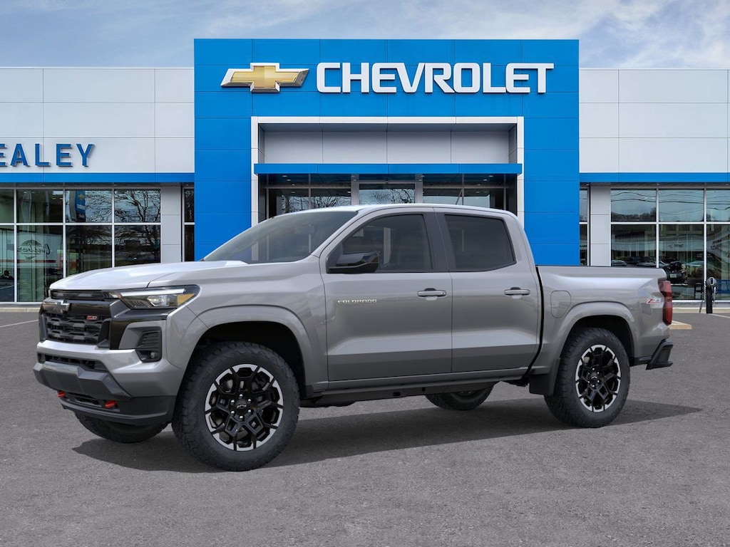 Sterling Gray Metallic 2026 Chevrolet Colorado Z71 4WD 8-Speed Automatic 2.7L I4 Turbocharged DOHC 16V LEV3-ULEV50 310hp 1st and 2nd Row All-Weather Floor Liner, 3.42 Rear Axle Ratio, 4-Way Manual Passenger Seat Adjuster, 4-Wheel Disc Brakes, 6 Speakers, 6-Speaker Audio System Feature, 8-Way Power Driver Seat Adjuster, ABS brakes, Air Conditioning, Alloy wheels, AM/FM radio: SiriusXM with 360L, Apple CarPlay/Android Auto, Auto High-beam Headlights, Auto-dimming Rear-View mirror, Automatic Emergency Braking, Automatic temperature control, Black Spray-on Bedliner with Chevrolet Logo, Brake assist, Bumpers: body-color, Chevy Safety Assist, Cloth/Evotex Seat Trim, Compass, Delay-off headlights, Driver and Front Passenger Heated Seats, Driver and Front Passenger Ventilated Seats, Driver door bin, Driver Memory Settings, Driver Seatback Map Pocket, Driver vanity mirror, Dual front impact airbags, Dual front side impact airbags, Electronic Stability Control, Emergency communication system: OnStar, Following Distance Indicator, Forward Collision Alert, Front anti-roll bar, Front Bucket Seats, Front Center Armrest, Front dual zone A/C, Front fog lights, Front License Plate Kit, Front Passenger Seatback Map Pocket, Front Pedestrian and Bicyclist Braking, Front reading lights, Front wheel independent suspension, Heated door mirrors, Heated front seats, Heated Steering Wheel, Illuminated entry, IntelliBeam Automatic High Beam on/Off, Lane Keep Assist with Lane Departure Warning, Low tire pressure warning, Mobile Service Plus, Navigation System, Occupant sensing airbag, Outside temperature display, Overhead airbag, Overhead console, Panic alarm, Passenger door bin, Passenger vanity mirror, Perforated Leather-Appointed Seat Trim, Power door mirrors, Power Driver Lumbar Control Seat Adjuster, Power driver seat, Power steering, Power windows, Preferred Equipment Group 4Z7, Radio data system, Radio: 11.3 Diagonal Advanced Color LCD Display, Rear Center Armrest, Rear reading lights, Rear step bumper, Rear window defroster, Remote keyless entry, Security system, SiriusXM with 360L Trial Subscription, Speed control, Speed-sensing steering, Split folding rear seat, Steering Wheel Mounted Audio Controls, Steering wheel mounted audio controls, Tachometer, Telescoping steering wheel, Tilt steering wheel, Traction control, Trip computer, Variably intermittent wipers, Wheels: 18 x 8.5 Android Dark Full Gloss Aluminum, Wheels: 20 x 9 Painted Aluminum with Machined Face, Wireless Phone Projection, Z71 Convenience Package III.