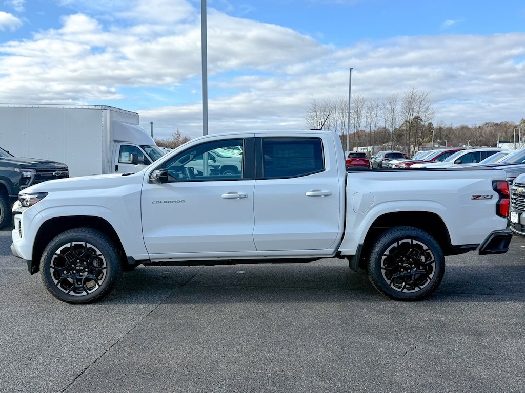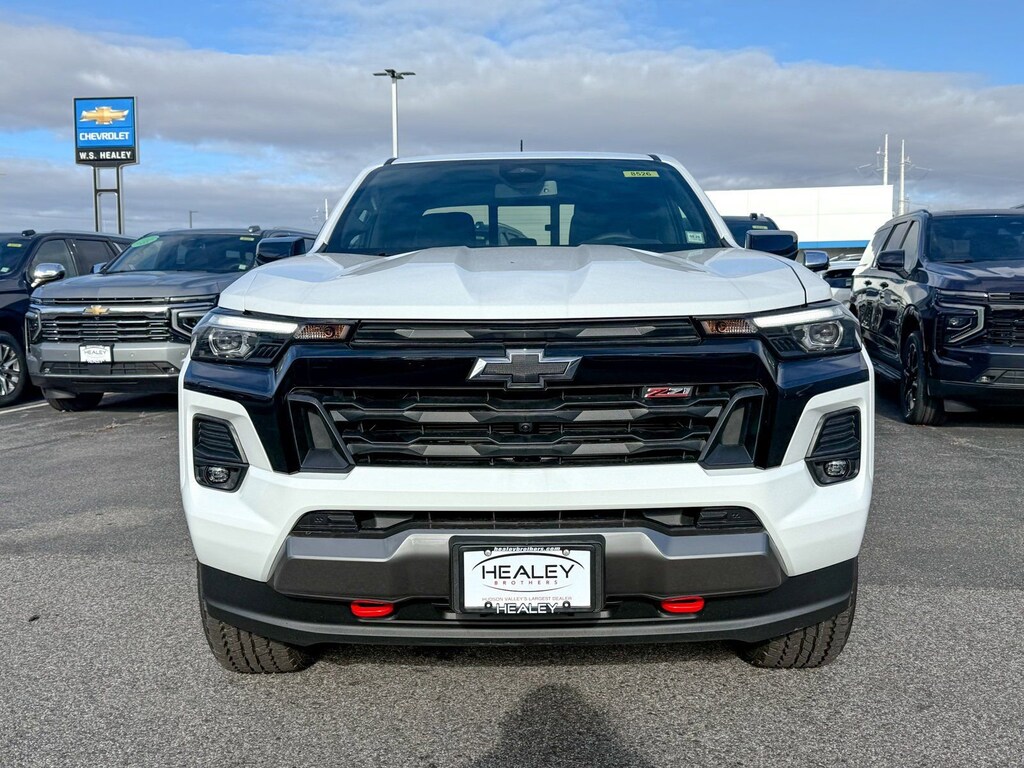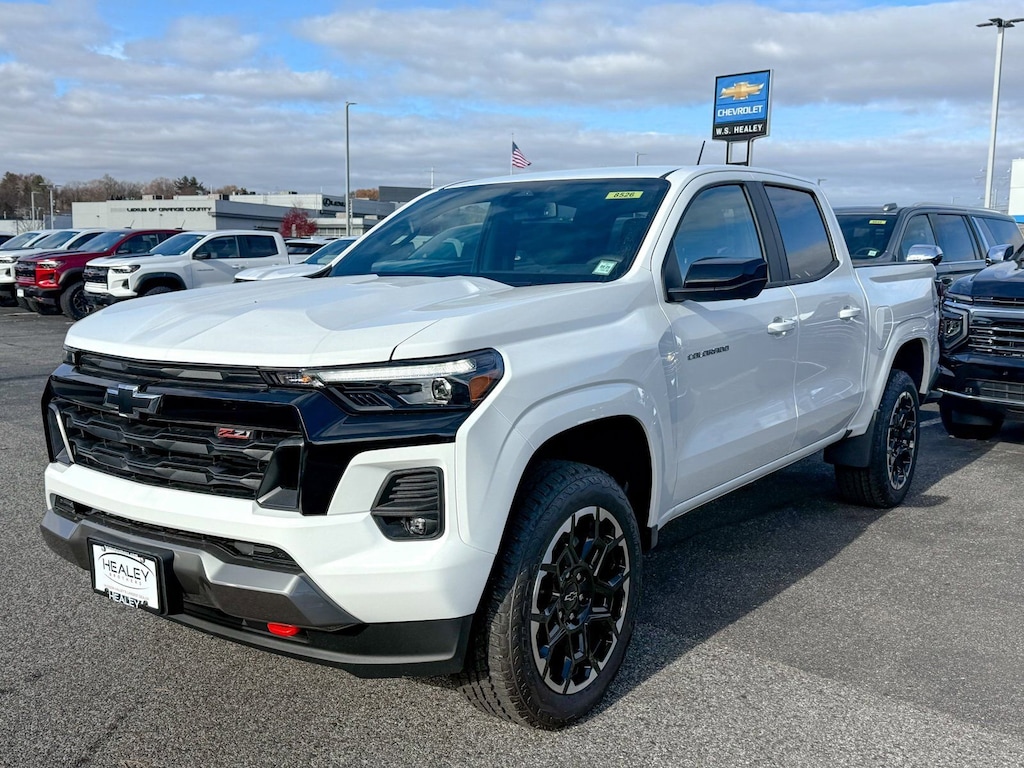 Summit White 2026 Chevrolet Colorado Z71 4WD 8-Speed Automatic 2.7L I4 Turbocharged DOHC 16V LEV3-ULEV50 310hp 3.42 Rear Axle Ratio, 4-Way Manual Passenger Seat Adjuster, 4-Wheel Disc Brakes, 6 Speakers, 6-Speaker Audio System Feature, 8-Way Power Driver Seat Adjuster, ABS brakes, Adaptive Cruise Control, Air Conditioning, Alloy wheels, AM/FM radio: SiriusXM with 360L, Apple CarPlay/Android Auto, Auto High-beam Headlights, Auto-dimming Rear-View mirror, Automatic Emergency Braking, Automatic temperature control, Bose Premium 7-Speaker Audio System Feature, Brake assist, Bumpers: body-color, Chevy Safety Assist, Cloth/Evotex Seat Trim, Compass, Delay-off headlights, Driver and Front Passenger Heated Seats, Driver and Front Passenger Ventilated Seats, Driver door bin, Driver Memory Settings, Driver Seatback Map Pocket, Driver vanity mirror, Dual front impact airbags, Dual front side impact airbags, Electronic Stability Control, Emergency communication system: OnStar, Following Distance Indicator, Forward Collision Alert, Front anti-roll bar, Front Bucket Seats, Front Center Armrest, Front dual zone A/C, Front fog lights, Front License Plate Kit, Front Passenger Seatback Map Pocket, Front Pedestrian and Bicyclist Braking, Front reading lights, Front wheel independent suspension, HD Surround Vision, Heated door mirrors, Heated front seats, Heated Steering Wheel, Illuminated entry, IntelliBeam Automatic High Beam on/Off, Lane Keep Assist with Lane Departure Warning, Low tire pressure warning, Mobile Service Plus, Navigation System, Occupant sensing airbag, Outside temperature display, Overhead airbag, Overhead console, Panic alarm, Passenger door bin, Passenger vanity mirror, Perforated Leather-Appointed Seat Trim, Power door mirrors, Power Driver Lumbar Control Seat Adjuster, Power driver seat, Power steering, Power windows, Preferred Equipment Group 4Z7, Radio data system, Radio: 11.3 Diagonal Advanced Color LCD Display, Rear Center Armrest, Rear Pedestrian Alert, Rear reading lights, Rear step bumper, Rear window defroster, Remote keyless entry, Security system, SiriusXM with 360L Trial Subscription, Speed control, Speed-sensing steering, Split folding rear seat, Steering Wheel Mounted Audio Controls, Steering wheel mounted audio controls, Tachometer, Technology Package, Telescoping steering wheel, Tilt steering wheel, Traction control, Trip computer, Variably intermittent wipers, Wheels: 18 x 8.5 Android Dark Full Gloss Aluminum, Wheels: 20 x 9 Painted Aluminum with Machined Face, Wireless Phone Projection, Z71 Convenience Package III.