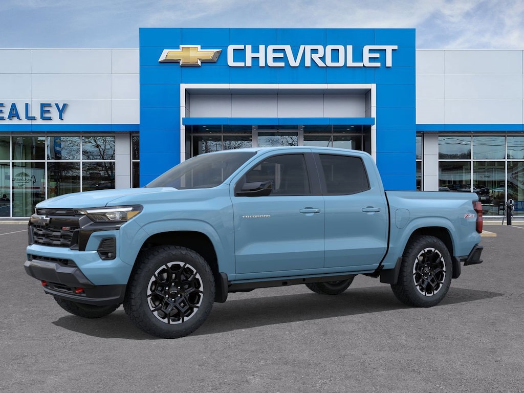 Snowdrift Metallic 2026 Chevrolet Colorado Z71 4WD 8-Speed Automatic 2.7L I4 Turbocharged DOHC 16V LEV3-ULEV50 310hp 3 Years SiriusXM, 3.42 Rear Axle Ratio, 4-Way Manual Passenger Seat Adjuster, 4-Wheel Disc Brakes, 6 Speakers, 6-Speaker Audio System Feature, 8-Way Power Driver Seat Adjuster, ABS brakes, Air Conditioning, Alloy wheels, AM/FM radio: SiriusXM with 360L, Apple CarPlay/Android Auto, Auto High-beam Headlights, Auto-dimming Rear-View mirror, Automatic Emergency Braking, Automatic temperature control, Black Spray-On Bedliner w/Chevrolet Logo, Brake assist, Bumpers: body-color, Chevy Safety Assist, Cloth/Evotex Seat Trim, Compass, Delay-off headlights, Driver & Front Passenger Heated Seats, Driver & Front Passenger Ventilated Seats, Driver door bin, Driver Memory Settings, Driver Seatback Map Pocket, Driver vanity mirror, Dual front impact airbags, Dual front side impact airbags, Electronic Stability Control, Emergency communication system: OnStar, Following Distance Indicator, Forward Collision Alert, Front & Rear Splash Guards, Front anti-roll bar, Front Bucket Seats, Front Center Armrest, Front dual zone A/C, Front fog lights, Front License Plate Kit, Front Passenger Seatback Map Pocket, Front Pedestrian & Bicyclist Braking, Front reading lights, Front wheel independent suspension, Heated door mirrors, Heated front seats, Heated Steering Wheel, Illuminated entry, IntelliBeam Automatic High Beam On/Off, Lane Keep Assist w/Lane Departure Warning, Low tire pressure warning, Mobile Service Plus, Navigation System, Occupant sensing airbag, Outside temperature display, Overhead airbag, Overhead console, Panic alarm, Passenger door bin, Passenger vanity mirror, Perforated Leather-Appointed Seat Trim, Power door mirrors, Power Driver Lumbar Control Seat Adjuster, Power driver seat, Power steering, Power windows, Preferred Equipment Group 4Z7, Radio data system, Radio: 11.3 Diagonal Advanced Color LCD Display, Rear Center Armrest, Rear reading lights, Rear step bumper, Rear window defroster, Remote keyless entry, Security system, SiriusXM w/360L Trial Subscription, Speed control, Speed-sensing steering, Split folding rear seat, Steering Wheel Mounted Audio Controls, Steering wheel mounted audio controls, Tachometer, Telescoping steering wheel, Tilt steering wheel, Traction control, Trip computer, Variably intermittent wipers, Wheels: 18 x 8.5 Android Dark Full Gloss Aluminum, Wheels: 20 x 9 Painted Aluminum w/Machined Face, Wireless Phone Projection, Z71 Convenience Package III.