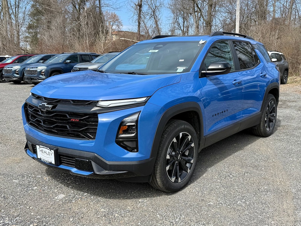 Reef Blue Metallic 2026 Chevrolet Equinox RS AWD 8-Speed Automatic 1.5L DOHC 2-Way Power Driver Lumbar Control Seat Adjuster, 3.47 Final Drive Axle Ratio, 4-Wheel Disc Brakes, 6 Speakers, ABS brakes, Air Conditioning, All-Weather Floor Liners, Alloy wheels, AM/FM radio: SiriusXM, Auto High-beam Headlights, Automatic temperature control, Brake assist, Bumpers: body-color, Cargo Mat, Compass, Delay-off headlights, Driver 8-Way Power Seat Adjuster, Driver door bin, Driver vanity mirror, Dual front impact airbags, Dual front side impact airbags, Electronic Stability Control, Emergency communication system: OnStar and Chevrolet connected services capable, Evotex Seat Trim, Floor Liner Package, Four wheel independent suspension, Front anti-roll bar, Front Bucket Seats, Front Center Armrest, Front dual zone A/C, Front Passenger 4-Way Manual Seat Adjuster, Front reading lights, Fully automatic headlights, Garage door transmitter, Heated door mirrors, Heated Driver and Front Passenger Seats, Heated front seats, Heated steering wheel, Illuminated entry, Low tire pressure warning, Mobile Service Plus, Navigation System, Occupant sensing airbag, Outside temperature display, Overhead airbag, Overhead console, Panic alarm, Passenger door bin, Passenger vanity mirror, Power door mirrors, Power driver seat, Power Dual Glass Panoramic Sliding Sunroof, Power Liftgate, Power steering, Power windows, Preferred Equipment Group 2RS, Premium audio system: Chevrolet Infotainment 3, Radio data system, Radio: 11.3 Diagonal Advanced Color LCD Display, Rain sensing wipers, Rear anti-roll bar, Rear reading lights, Rear seat center armrest, Rear window defroster, Rear window wiper, Remote keyless entry, Second Row All-Weather Mat, Security system, SiriusXM with 360L Trial Subscription, Speed control, Speed-sensing steering, Split folding rear seat, Spoiler, Sport steering wheel, Steering wheel mounted audio controls, Tachometer, Telescoping steering wheel, Tilt steering wheel, Traction control, Trip computer, Variably intermittent wipers, Wheels: 19 Carbon Flash Metallic Aluminum.