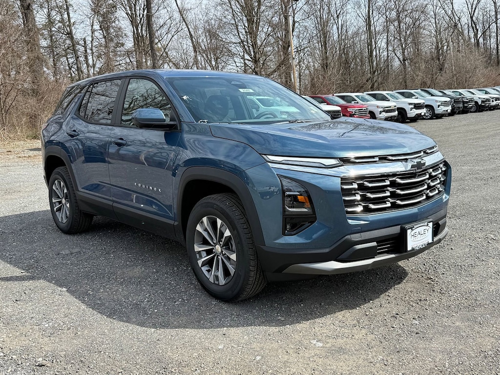 Lakeshore Blue Metallic 2026 Chevrolet Equinox LT AWD 8-Speed Automatic 1.5L DOHC 3.47 Final Drive Axle Ratio, 4-Wheel Disc Brakes, 6 Speakers, ABS brakes, Air Conditioning, All-Weather Floor Liners, Alloy wheels, AM/FM radio: SiriusXM, Auto High-beam Headlights, Brake assist, Bumpers: body-color, Cargo Mat, Cloth Seat Trim, Compass, Delay-off headlights, Driver 6-Way Manual Seat Adjuster, Driver door bin, Driver vanity mirror, Dual front impact airbags, Dual front side impact airbags, Electronic Stability Control, Emergency communication system: OnStar and Chevrolet connected services capable, Floor Liner Package, Four wheel independent suspension, Front and Rear Black Bowtie Emblems, Front anti-roll bar, Front Bucket Seats, Front Center Armrest, Front Fog Lamps, Front Passenger 4-Way Manual Seat Adjuster, Front reading lights, Fully automatic headlights, HD Surround Vision, Heated door mirrors, Heated Driver and Front Passenger Seats, Heated front seats, Heated steering wheel, Illuminated entry, Low tire pressure warning, Mobile Service Plus, Navigation System, Occupant sensing airbag, Outside temperature display, Overhead airbag, Overhead console, Panic alarm, Passenger door bin, Passenger vanity mirror, Power door mirrors, Power steering, Power windows, Preferred Equipment Group 2LT, Premium audio system: Chevrolet Infotainment 3, Radio data system, Radio: 11.3 Diagonal Advanced Color LCD Display, Rear anti-roll bar, Rear Camera Mirror Washer, Rear Pedestrian Alert, Rear reading lights, Rear seat center armrest, Rear window defroster, Rear window wiper, Remote keyless entry, Safety and Technology Package, Second Row All-Weather Mat, Security system, SiriusXM with 360L Trial Subscription, Speed control, Speed-sensing steering, Split folding rear seat, Spoiler, Steering wheel mounted audio controls, Tachometer, Telescoping steering wheel, Tilt steering wheel, Traction control, Traffic Sign Recognition, Trip computer, Variably intermittent wipers, Wheels: 17 Grazen Metallic Machined-Face Aluminum.