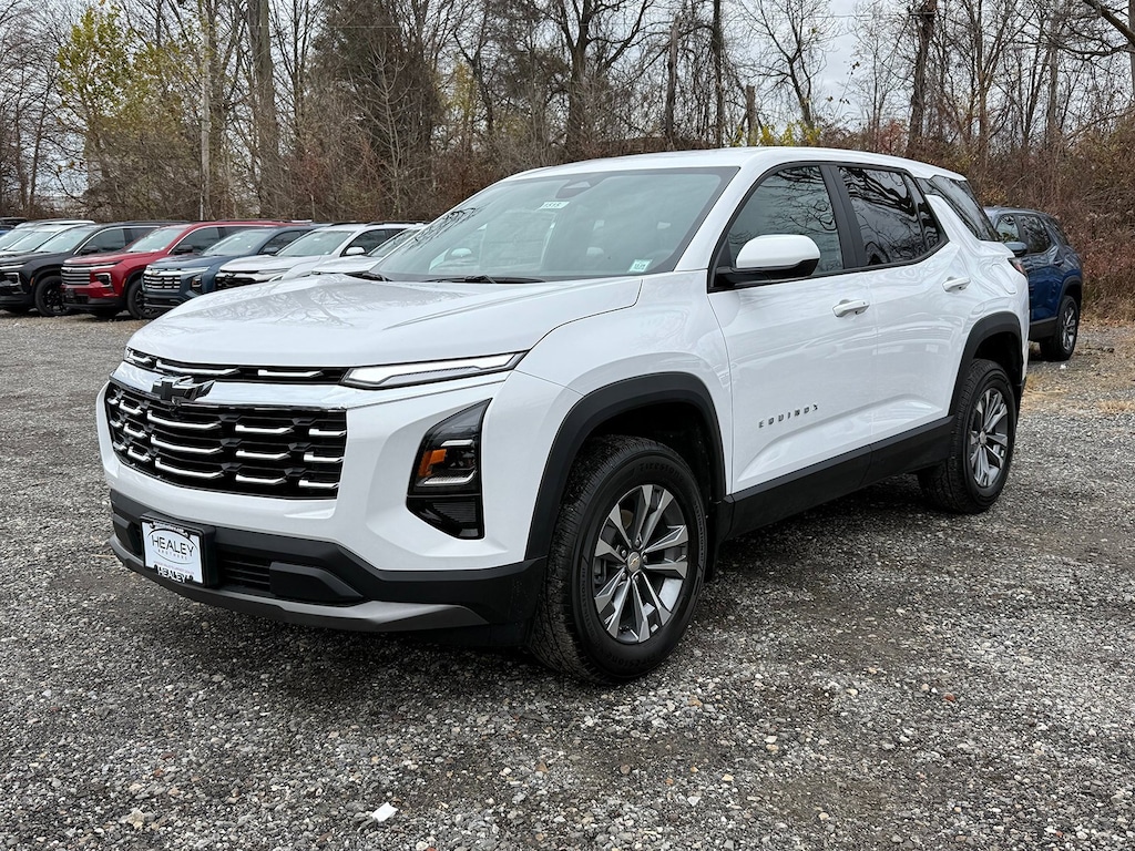 Summit White 2026 Chevrolet Equinox LT FWD CVT 1.5L DOHC 4-Wheel Disc Brakes, 5.81 Final Drive Axle Ratio, 6 Speakers, ABS brakes, Air Conditioning, All-Weather Floor Liners (LPO), Alloy wheels, AM/FM radio: SiriusXM, Auto High-beam Headlights, Brake assist, Bumpers: body-color, Cargo Mat, Cloth Seat Trim, Compass, Custom Molded Front & Rear Splash Guards (LPO), Delay-off headlights, Driver 6-Way Manual Seat Adjuster, Driver door bin, Driver vanity mirror, Dual front impact airbags, Dual front side impact airbags, Electronic Stability Control, Emergency communication system: OnStar and Chevrolet connected services capable, Floor Liner Package (LPO), Four wheel independent suspension, Front & Rear Black Bowtie Emblems (LPO), Front anti-roll bar, Front Bucket Seats, Front Center Armrest, Front Passenger 4-Way Manual Seat Adjuster, Front reading lights, Fully automatic headlights, Heated door mirrors, Heated Driver & Front Passenger Seats, Heated front seats, Heated steering wheel, Illuminated entry, Low tire pressure warning, Mobile Service Plus, Navigation System, Occupant sensing airbag, Outside temperature display, Overhead airbag, Overhead console, Panic alarm, Passenger door bin, Passenger vanity mirror, Power door mirrors, Power steering, Power windows, Preferred Equipment Group 1LT, Premium audio system: Chevrolet Infotainment 3, Radio data system, Radio: 11.3 Diagonal Advanced Color LCD Display, Rear anti-roll bar, Rear reading lights, Rear seat center armrest, Rear window defroster, Rear window wiper, Remote keyless entry, Second Row All-Weather Mat (LPO), Security system, SiriusXM w/360L Trial Subscription, Speed control, Speed-sensing steering, Split folding rear seat, Spoiler, Steering wheel mounted audio controls, Tachometer, Telescoping steering wheel, Tilt steering wheel, Traction control, Trip computer, Variably intermittent wipers, Wheels: 17 Grazen Metallic Machined-Face Aluminum.