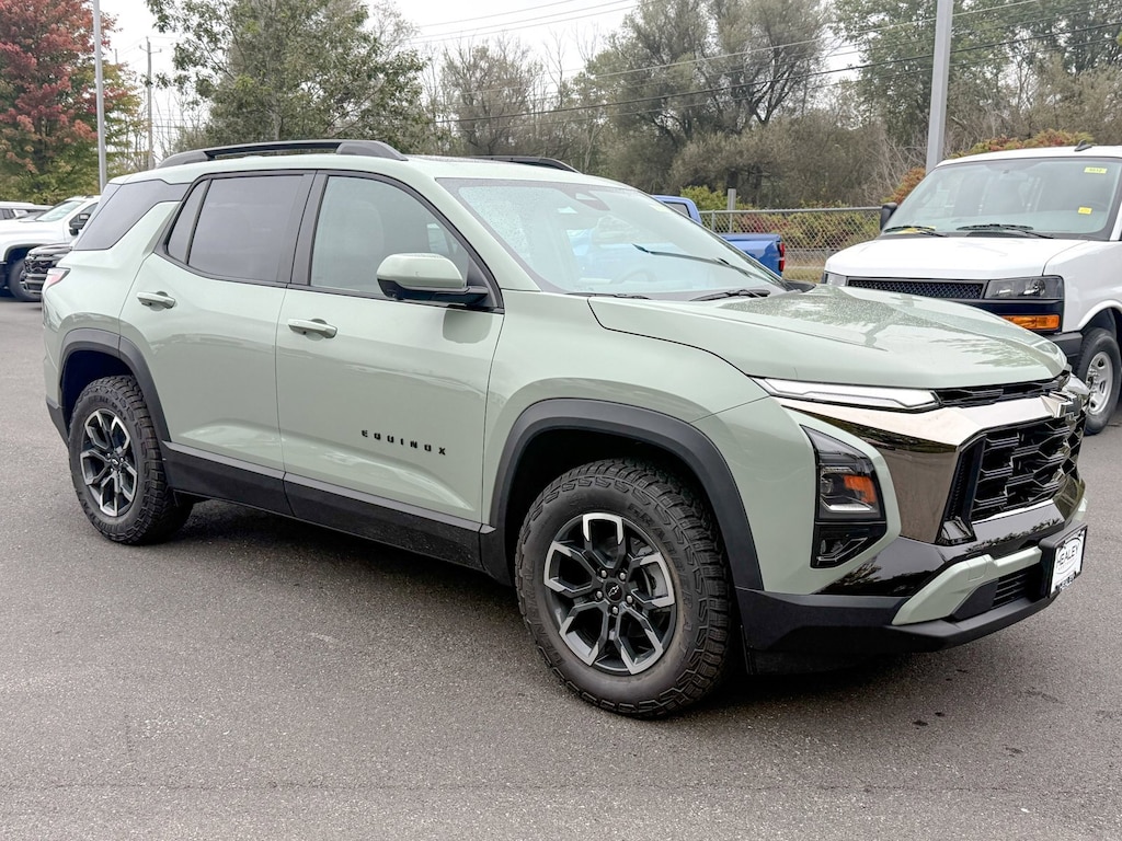 Cacti Green 2026 Chevrolet Equinox ACTIV AWD 8-Speed Automatic 1.5L DOHC 2-Way Power Driver Lumbar Control Seat Adjuster, 3.47 Final Drive Axle Ratio, 4-Wheel Disc Brakes, 6 Speakers, ABS brakes, Air Conditioning, Alloy wheels, AM/FM radio: SiriusXM, Auto High-beam Headlights, Automatic temperature control, Brake assist, Bumpers: body-color, Compass, Convenience Package III, Delay-off headlights, Deleted Mobile Service Plus, Driver 8-Way Power Seat Adjuster, Driver door bin, Driver vanity mirror, Dual front impact airbags, Dual front side impact airbags, Electronic Stability Control, Emergency communication system: OnStar and Chevrolet connected services capable, Four wheel independent suspension, Front anti-roll bar, Front Bucket Seats, Front Center Armrest, Front dual zone A/C, Front Fog Lamps, Front Passenger 2-Way Power Lumbar Seat Adjuster, Front Passenger 4-Way Manual Seat Adjuster, Front Passenger 8-Way Power Seat Adjuster, Front reading lights, Fully automatic headlights, Garage door transmitter, HD Surround Vision, Heated door mirrors, Heated Driver & Front Passenger Seats, Heated front seats, Heated Rear Outboard Seating Positions, Heated steering wheel, Illuminated entry, Low tire pressure warning, Memory Settings, Navigation System, Occupant sensing airbag, Outside temperature display, Overhead airbag, Overhead console, Panic alarm, Passenger door bin, Passenger vanity mirror, Power door mirrors, Power driver seat, Power Dual Glass Panoramic Sliding Sunroof, Power Liftgate, Power steering, Power windows, Preferred Equipment Group KDZ, Premium audio system: Chevrolet Infotainment 3 Plus, Radio data system, Radio: 11.3 Diagonal Advanced Color LCD Display, Rain sensing wipers, Rear anti-roll bar, Rear Camera Mirror Washer, Rear Pedestrian Alert, Rear reading lights, Rear seat center armrest, Rear window defroster, Rear window wiper, Remote keyless entry, Safety & Technology Package, Security system, SiriusXM w/360L Trial Subscription, Speed control, Speed-sensing steering, Split folding rear seat, Spoiler, Steering wheel mounted audio controls, Sueded Microfiber Seat Trim, Tachometer, Telescoping steering wheel, Tilt steering wheel, Traction control, Traffic Sign Recognition, Trip computer, Variably intermittent wipers, Ventilated Driver Seat, Ventilated Front Passenger Seat, Wheels: 17 Dark Android Machined-Face Aluminum.