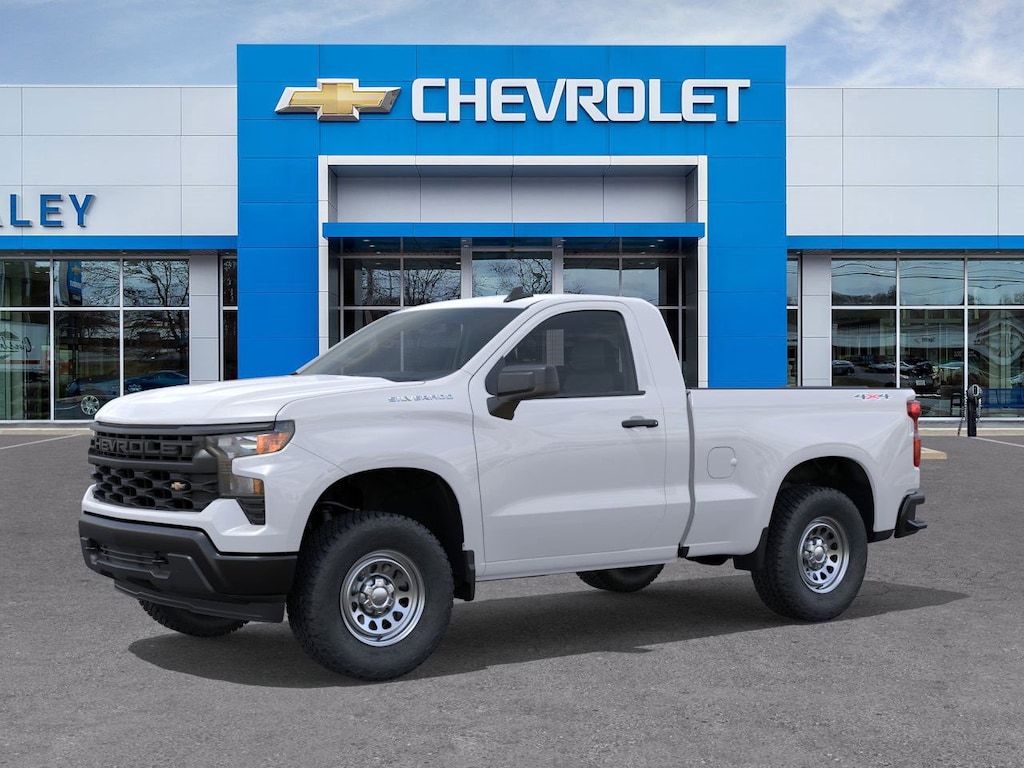 Summit White 2026 Chevrolet Silverado 1500 WT 4WD 8-Speed Automatic 2.7L I4 Turbocharged DOHC 16V LEV3-SULEV30 310hp 2 Speakers, 2-Speaker Audio System, 220 Amp Alternator, 3.42 Rear Axle Ratio, 3.5 Monochromatic Display Driver Info Center, 4-Way Manual Driver Seat Adjuster, 4-Wheel Disc Brakes, 40/20/40 Front Split Bench Seat, ABS brakes, Air Conditioning, Apple CarPlay/Android Auto, Auto High-beam Headlights, Automatic Emergency Braking, Black (Semi-Gloss) Front Bumper, Black (Semi-Gloss) Rear Bumper, Bluetooth® For Phone, Brake assist, Chevytec Spray-on Black Bedliner, Compass, Deep-Tinted Glass, Delay-off headlights, Driver door bin, Dual front impact airbags, Dual front side impact airbags, Electric Rear-Window Defogger, Electronic Cruise Control, Electronic Stability Control, Emergency communication system: OnStar, Following Distance Indicator, Forward Collision Alert, Front anti-roll bar, Front Center Armrest w/Storage, Front Frame-Mounted Black Recovery Hooks, Front Pedestrian Braking, Front reading lights, Front wheel independent suspension, Fully automatic headlights, HD Rear Vision Camera, Heated door mirrors, Heated Power-Adjustable Outside Mirrors, Heavy-Duty Air Filter, Hitch Guidance, Illuminated entry, Inside Rearview Mirror with Tilt, Integrated Trailer Brake Controller, IntelliBeam Automatic High Beam on/Off, Lane Keep Assist with Lane Departure Warning, Locking Tailgate, Low tire pressure warning, Manual Tailgate Function with No EZ Lift, Manual Tilt Wheel Steering Column, Occupant sensing airbag, OnStar Services Capable, Outside temperature display, Overhead airbag, Overhead console, Panic alarm, Passenger door bin, Passenger vanity mirror, Power door mirrors, Power Front Windows with Driver Express Up/Down, Power steering, Power windows, Premium audio system: Chevrolet Infotainment 3, Radio data system, Radio: Chevrolet Infotainment 3 System, Rear reading lights, Rear step bumper, Remote Keyless Entry, Remote keyless entry, Rubberized-Vinyl Floor Covering, SiriusXM Delete, Solar Absorbing Tinted Glass, Speed control, Speed-sensing steering, Standard Suspension Package, Standard Tailgate, Tachometer, Teen Driver, Tilt steering wheel, Tire Pressure Monitoring System, Traction control, Trailering Package, Trip computer, Upfitter Switch Kit (5), Variably intermittent wipers, Vinyl Seat Trim, Voltmeter, Wheels: 17 x 8 Ultra Silver Painted Steel, Wi-Fi Hot Spot Capable, Work Truck Package, WT Convenience Package, WT Value Package.