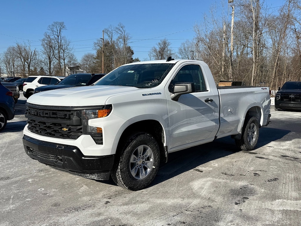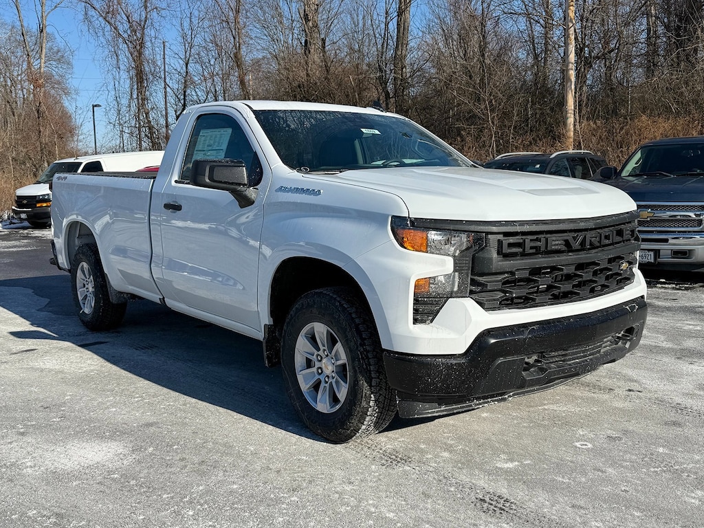 Summit White 2026 Chevrolet Silverado 1500 WT 4WD 10-Speed Automatic EcoTec3 5.3L V8 2 Speakers, 2-Speaker Audio System, 220 Amp Alternator, 3 Years SiriusXM, 3.5 Monochromatic Display Driver Info Center, 4-Way Manual Driver Seat Adjuster, 4-Wheel Disc Brakes, 40/20/40 Front Split Bench Seat, ABS brakes, Air Conditioning, All-Weather Floor Liner, Apple CarPlay/Android Auto, Auto High-beam Headlights, Auto-Locking Rear Differential, Automatic Emergency Braking, Black (Semi-Gloss) Front Bumper, Black (Semi-Gloss) Rear Bumper, Black Name Plates, Bluetooth® For Phone, Brake assist, Chevytec Spray-on Black Bedliner, Color-Keyed Carpeting Floor Covering, Compass, Dark Essentials Package, Deep-Tinted Glass, Delay-off headlights, Driver door bin, Dual front impact airbags, Dual front side impact airbags, Electric Rear-Window Defogger, Electronic Cruise Control, Electronic Stability Control, Emergency communication system: OnStar, Following Distance Indicator, Forward Collision Alert, Front anti-roll bar, Front Black Bowtie Emblem, Front Center Armrest w/Storage, Front Frame-Mounted Black Recovery Hooks, Front Pedestrian Braking, Front reading lights, Front Rubberized Vinyl Floor Mats, Front wheel independent suspension, Fully automatic headlights, HD Rear Vision Camera, Heated door mirrors, Heated Power-Adjustable Outside Mirrors, Heavy-Duty Air Filter, Hitch Guidance, Illuminated entry, Inside Rearview Mirror with Tilt, IntelliBeam Automatic High Beam on/Off, Lane Keep Assist with Lane Departure Warning, Liner Protection Package (LPO), Locking Tailgate, Low tire pressure warning, Manual Tailgate Function with No EZ Lift, Manual Tilt Wheel Steering Column, Mobile Service Plus, Molded Black Splash Guards, Occupant sensing airbag, OnStar Services Capable, Outside temperature display, Overhead airbag, Overhead console, Panic alarm, Passenger door bin, Passenger vanity mirror, Power door mirrors, Power Front Windows with Driver Express Up/Down, Power steering, Power windows, Premium audio system: Chevrolet Infotainment 3, Radio data system, Radio: Chevrolet Infotainment 3 System, Rear reading lights, Rear step bumper, Rear Wheel House Liners, Remote Keyless Entry, Remote keyless entry, Rubberized-Vinyl Floor Covering, SiriusXM Delete, SiriusXM Trial Subscription, Solar Absorbing Tinted Glass, Speed control, Speed-sensing steering, Standard Suspension Package, Standard Tailgate, Tachometer, Teen Driver, Tilt steering wheel, Tire Pressure Monitoring System, Traction control, Trailering Package, Trip computer, Upfitter Switch Kit (5), Variably intermittent wipers, Vinyl Seat Trim, Voltmeter, Wheels: 17 x 8 Bright Silver Painted Aluminum, Wheels: 17 x 8 Ultra Silver Painted Steel, Wi-Fi Hot Spot Capable, Work Truck Package, WT Convenience Package, WT Value Package.