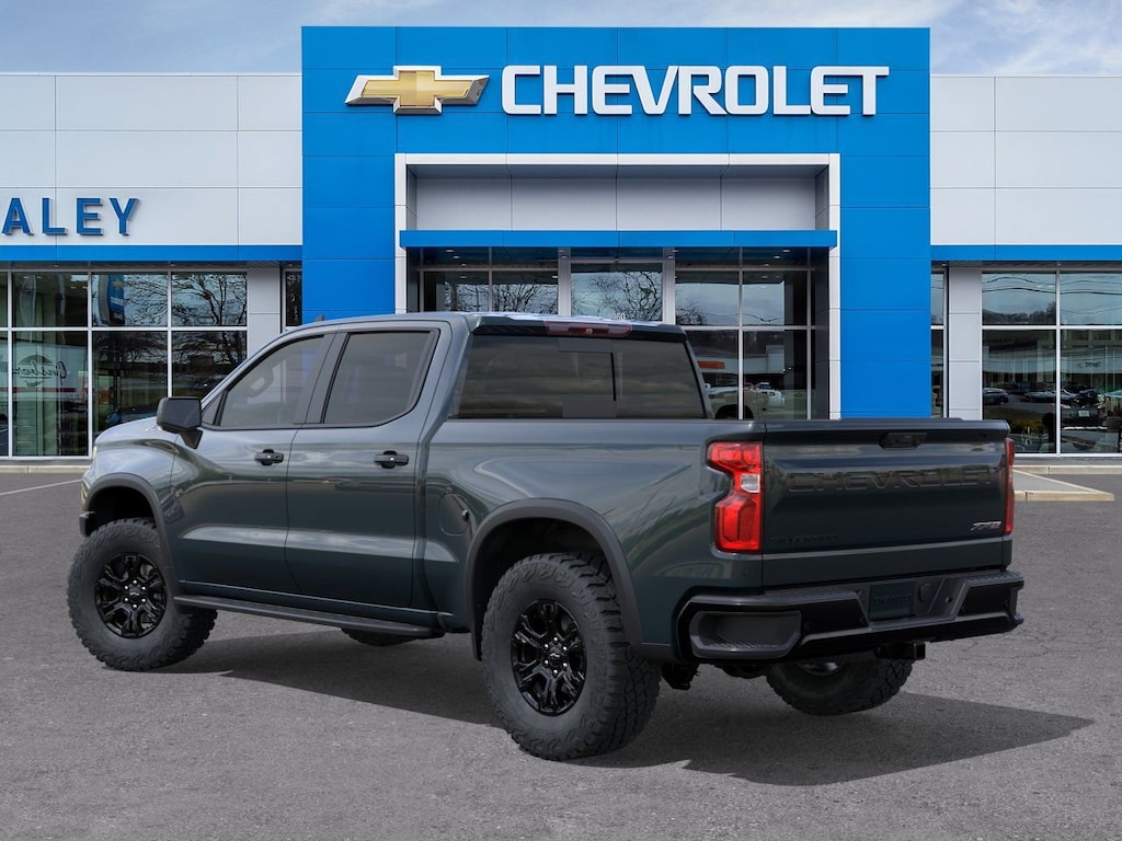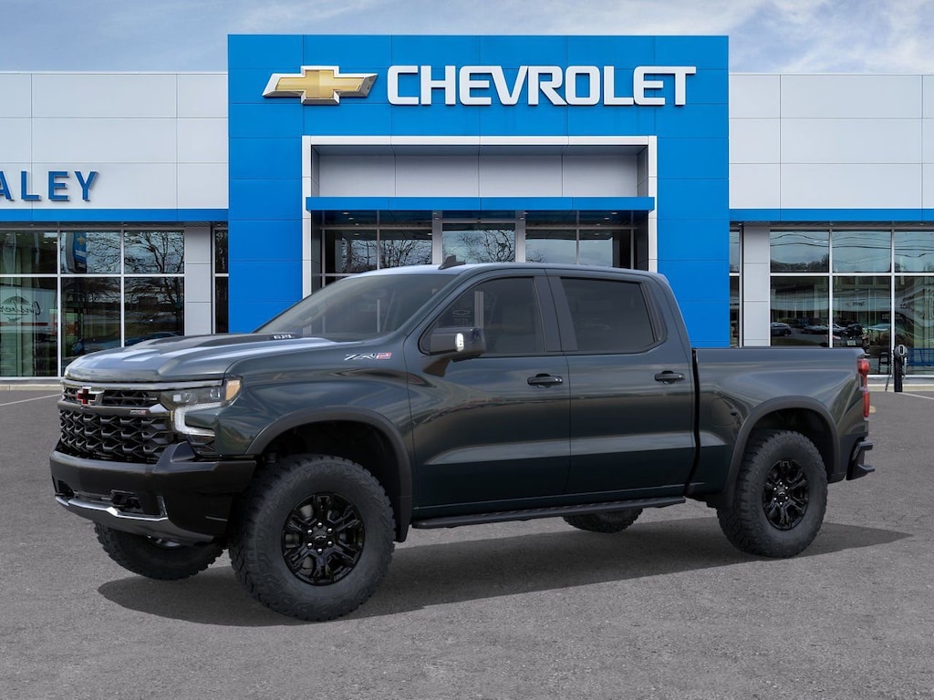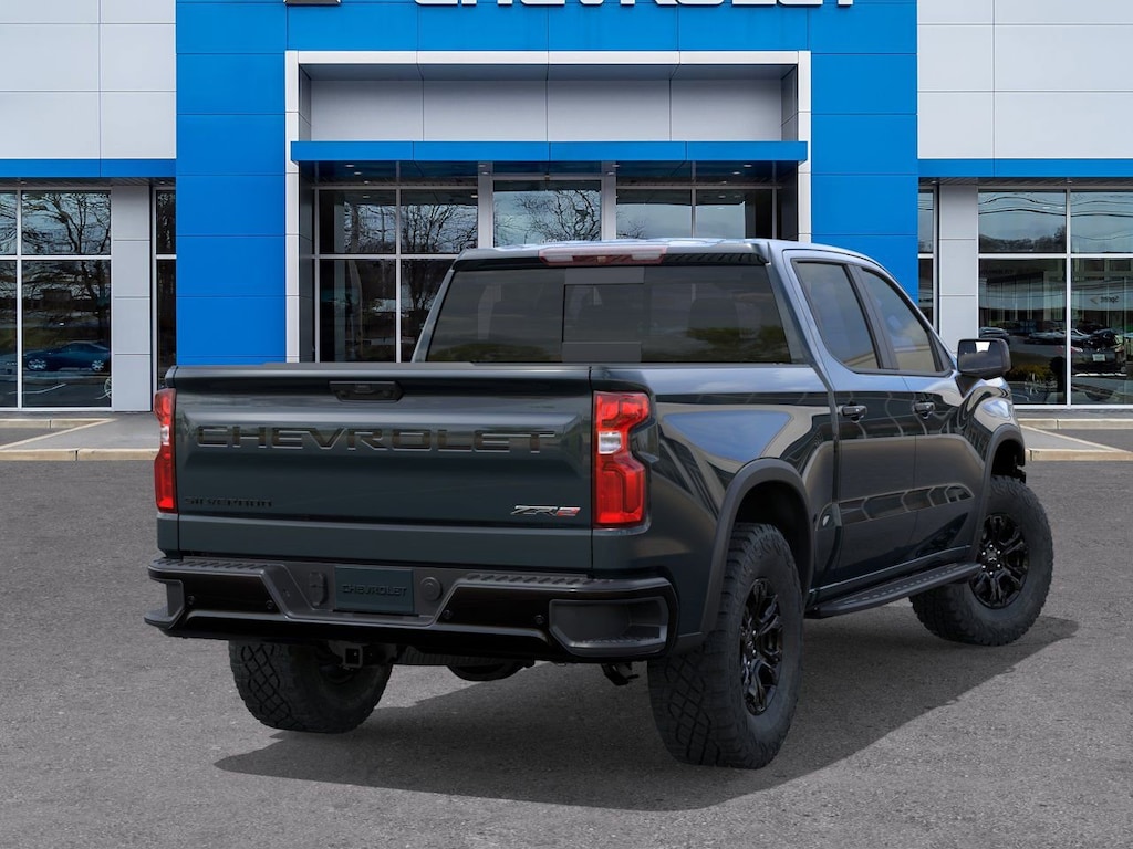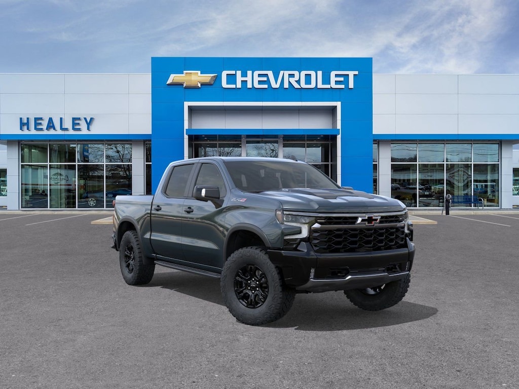 Gray 2026 Chevrolet Silverado 1500 ZR2 4WD 10-Speed Automatic EcoTec3 6.2L V8 10-Way Power Driver Seat with Lumbar, 10-Way Power Passenger Seat Adjuster with Lumbar, 12.3 Multicolor Reconfigurable Digital Display, 120-Volt Bed Mounted Power Outlet, 120-Volt Interior Power Outlet, 15 Diagonal Multicolor Head-Up Display, 2 USB Data Ports, 220 Amp Alternator, 2nd Row Heated Outboard Seats, 3.23 Rear Axle Ratio, 4-Wheel Disc Brakes, 7 Speakers, 850 Cold-Cranking Amps Heavy-Duty Battery, ABS brakes, Adaptive Cruise Control, Air Conditioning, All-Weather Floor Liner, Alloy wheels, AM/FM radio: SiriusXM with 360L, Apple CarPlay/Android Auto, Auto High-beam Headlights, Auto-dimming door mirrors, Auto-dimming Rear-View mirror, Automatic Emergency Braking, Automatic temperature control, Bed View Camera, Block heater, Bluetooth® For Phone, Brake assist, Chevytec Spray-on Black Bedliner, Color-Keyed Carpeting Floor Covering, Compass, Dark Appearance Package, Deep-Tinted Glass, Delay-off headlights, Driver door bin, Driver Memory, Driver vanity mirror, Dual Active Exhaust, Dual Exhaust, Dual front impact airbags, Dual front side impact airbags, Dual Rear USB Ports (charge Only), Electric Rear-Window Defogger, Electronic Stability Control, Electronic Transmission Range Selector Shifter, Emergency communication system: OnStar, Engine Block Heater, EZ Lift Power Lock and Release Tailgate, Floor Mounted Center Console, Following Distance Indicator, Forward Collision Alert, Front anti-roll bar, Front Bucket Seats, Front Center Armrest, Front dual zone A/C, Front fog lights, Front Frame-Mounted Black Recovery Hooks, Front LED Fog Lamps, Front Pedestrian Braking, Front Rain-Sensing Wipers, Front reading lights, Front wheel independent suspension, Fully automatic headlights, Garage door transmitter, HD Surround Vision, Heads-Up Display, Heated door mirrors, Heated Driver and Front Outboard Passenger Seats, Heated front seats, Heated rear seats, Heated Steering Wheel, Heated steering wheel, Heavy-Duty Air Filter, High Gloss Black Mirror Caps, Hill Descent Control, Hitch Guidance, Hitch Guidance with Hitch View, Illuminated entry, in-Vehicle Trailering System App, Integrated Trailer Brake Controller, IntelliBeam Automatic High Beam on/Off, Keyless Open and Start, Lane Keep Assist with Lane Departure Warning, LED Cargo Area Lighting, Low tire pressure warning, Memory seat, Mobile Service Plus, Multi-Flex Tailgate, Occupant sensing airbag, Off-Road High Clearance Steps, OnStar Services Capable, Outside Heated Power-Adjustable Mirrors, Outside temperature display, Overhead airbag, Overhead console, Panic alarm, Passenger door bin, Passenger vanity mirror, Perforated Leather Seat Trim, Performance Red Recovery Hooks, Perimeter Lighting, Power door mirrors, Power driver seat, Power Front Passenger Windows with Express Up/Down, Power Front Windows with Driver Express Up/Down, Power passenger seat, Power Rear Windows with Express Down, Power Sliding Rear Window with Rear Defogger, Power steering, Power Sunroof, Power Tailgate, Power Tilt and Telescoping Steering Column, Power windows, Premium audio system: Chevrolet Infotainment 3 Premium, Premium Bose 7-Speaker Sound System, Radio data system, Radio: Chevrolet Infotainment 3 Premium System, Rain sensing wipers, Rear Camera Mirror, Rear Cross Traffic Braking, Rear Pedestrian Alert, Rear reading lights, Rear seat center armrest, Rear step bumper, Rear Wheelhouse Liners, Rear window defroster, Remote keyless entry, Remote Vehicle Starter System, Safety Alert Seat, Security system, SiriusXM with 360L Trial Subscription, Speed control, Speed-sensing steering, Split folding rear seat, Steering Wheel Audio Controls, Steering wheel mounted audio controls, Tachometer, Technology Package, Teen Driver, Telescoping steering wheel, Theft Deterrent System (unauthorized Entry), Tilt steering wheel, Tire Pressure Monitoring System, Traction control, Trailer Camera Provisi