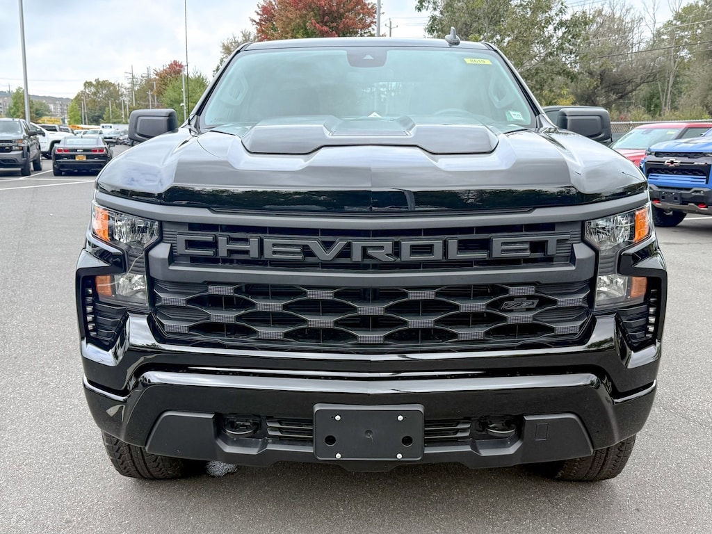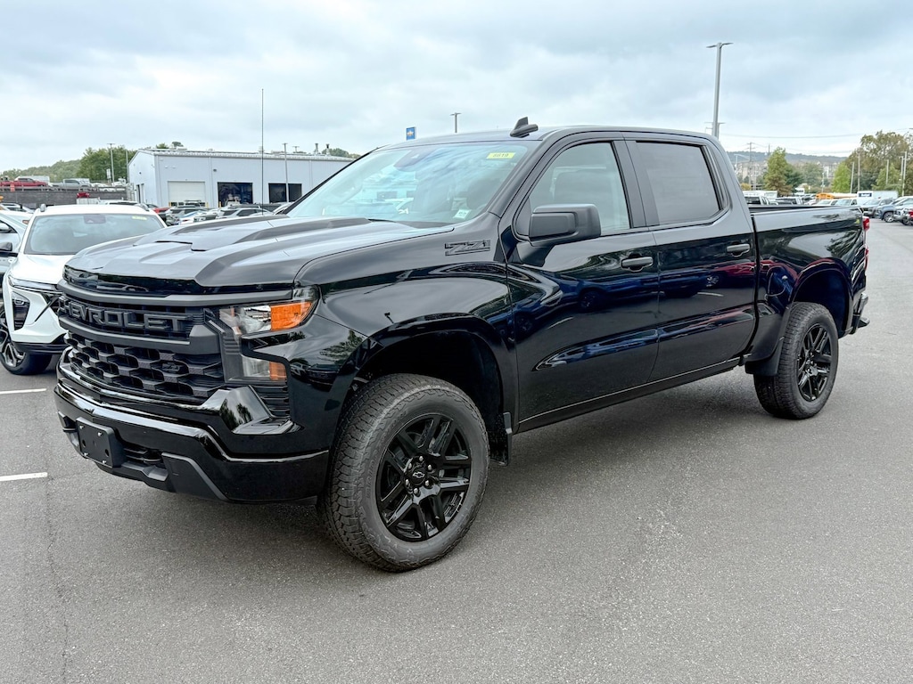 Black 2026 Chevrolet Silverado 1500 Custom Trail Boss 4WD 10-Speed Automatic EcoTec3 5.3L V8 10-Way Power Driver Seat w/Lumbar, 120-Volt Bed Mounted Power Outlet, 120-Volt Interior Power Outlet, 170 Amp Alternator, 220 Amp Alternator, 3.5 Monochromatic Display Driver Info Center, 4-Wheel Disc Brakes, 40/20/40 Front Split-Bench Seat, 6 Speakers, 6-Speaker Audio System, ABS brakes, Air Conditioning, Alloy wheels, AM/FM radio: SiriusXM, Apple CarPlay/Android Auto, Auto High-beam Headlights, Auto-Locking Rear Differential, Automatic Emergency Braking, Auxiliary External Transmission Oil Cooler, Black Chrome Exhaust Tip (LPO), Bluetooth® For Phone, Brake assist, Chevytec Spray-On Black Bedliner, Cloth Seat Trim, Color-Keyed Carpeting Floor Covering, Compass, Custom Convenience Package, Dark Appearance Package, Deep-Tinted Glass, Delay-off headlights, Deleted Mobile Service Plus, Driver door bin, Driver vanity mirror, Dual Exhaust w/Polished Outlets, Dual front impact airbags, Dual front side impact airbags, Dual Rear USB Ports (Charge Only), Electric Rear-Window Defogger, Electronic Cruise Control, Electronic Stability Control, Emergency communication system: OnStar, External Engine Oil Cooler, EZ Lift Power Lock & Release Tailgate, Following Distance Indicator, Forward Collision Alert, Front anti-roll bar, Front Center Armrest w/Storage, Front Frame-Mounted Black Recovery Hooks, Front License Plate Kit, Front Pedestrian Braking, Front reading lights, Front Rubberized Vinyl Floor Mats, Front wheel independent suspension, Fully automatic headlights, HD Rear Vision Camera, Heated door mirrors, Heavy-Duty Air Filter, Hill Descent Control, Hitch Guidance, Illuminated entry, Integrated Trailer Brake Controller, IntelliBeam Automatic High Beam On/Off, Lane Keep Assist w/Lane Departure Warning, LED Cargo Area Lighting, Low tire pressure warning, Manual Tilt Wheel Steering Column, Occupant sensing airbag, OnStar Services Capable, Outside temperature display, Overhead airbag, Overhead console, Panic alarm, Passenger door bin, Passenger vanity mirror, Performance Red Recovery Hooks, Power door mirrors, Power driver seat, Power Front Windows w/Driver Express Up/Down, Power Front Windows w/Passenger Express Down, Power Rear Windows w/Express Down, Power steering, Power windows, Preferred Equipment Group 2CX, Premium audio system: Chevrolet Infotainment 3, Radio data system, Radio: Chevrolet Infotainment 3 System, Rear 60/40 Folding Bench Seat (Folds Up), Rear reading lights, Rear Rubberized-Vinyl Floor Mats, Rear step bumper, Rear Wheelhouse Liners, Rear window defroster, Remote Keyless Entry, Remote keyless entry, Remote Vehicle Starter System, Security system, Single Outlet Exhaust, SiriusXM Trial Subscription, Speed control, Speed-sensing steering, Split folding rear seat, Standard Tailgate, Suspension Package, Tachometer, Teen Driver, Theft Deterrent System (Unauthorized Entry), Tilt steering wheel, Tire Pressure Monitoring System, Traction control, Trailering Package, Trip computer, Variably intermittent wipers, Voltmeter, Wheels: 18 x 8.5 Black Painted Aluminum, Wheels: 20 x 9 High Gloss Black Painted Alum, Wi-Fi Hot Spot Capable.