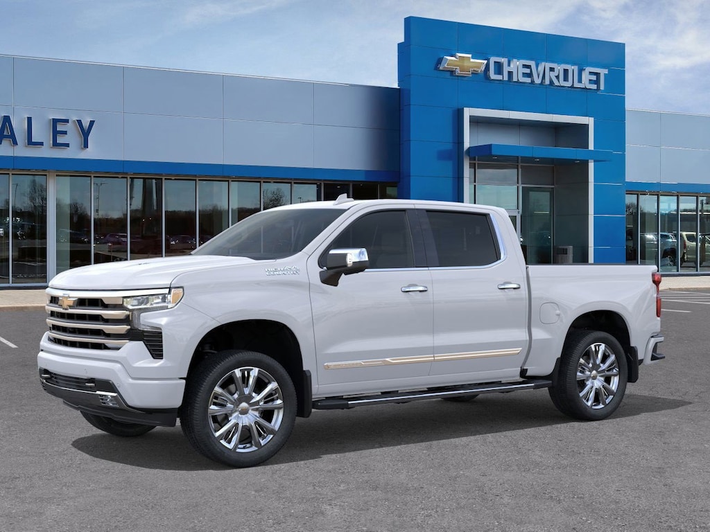 Polar White 2026 Chevrolet Silverado 1500 High Country 4WD 10-Speed Automatic EcoTec3 6.2L V8 10-Way Power Driver Seat w/Lumbar, 10-Way Power Passenger Seat Adjuster w/Lumbar, 12.3 Multicolor Reconfigurable Digital Display, 120-Volt Bed Mounted Power Outlet, 120-Volt Interior Power Outlet, 15 Diagonal Multicolor Head-Up Display, 170 Amp Alternator, 2 USB Data Ports, 2nd Row Heated Outboard Seats, 3.23 Rear Axle Ratio, 4-Wheel Disc Brakes, 7 Speakers, ABS brakes, Adaptive Cruise Control, Adaptive Ride Control Suspension, Air Conditioning, Alloy wheels, AM/FM radio: SiriusXM with 360L, Apple CarPlay/Android Auto, Auto High-beam Headlights, Auto-dimming door mirrors, Auto-Dimming Inside Rear-View Mirror, Auto-dimming Rear-View mirror, Auto-Locking Rear Differential, Automatic temperature control, Bed View Camera, Bluetooth® For Phone, Bodyside moldings, Brake assist, Bumpers: body-color, Chevytec Spray-On Black Bedliner, Chrome Assist Steps, Chrome Recovery Hooks, Color-Keyed Carpeting Floor Covering, Compass, Deep-Tinted Glass, Delay-off headlights, Driver door bin, Driver Memory, Driver vanity mirror, Dual Active Exhaust, Dual Exhaust w/Polished Outlets, Dual front impact airbags, Dual front side impact airbags, Dual Rear USB Ports (Charge Only), Electric Rear-Window Defogger, Electronic Stability Control, Electronic Transmission Range Selector Shifter, Emergency communication system: OnStar, Enhanced Automatic Emergency Braking, Floor Mounted Center Console, Following Distance Indicator, Forward Collision Alert, Front anti-roll bar, Front Bucket Seats, Front Carpeted Floor Mats, Front Center Armrest, Front dual zone A/C, Front fog lights, Front LED Fog Lamps, Front Pedestrian Braking, Front Rain-Sensing Wipers, Front reading lights, Front wheel independent suspension, Fully automatic headlights, Galvano Silver Painted Mirror Caps, Garage door transmitter, Genuine wood console insert, Genuine wood dashboard insert, Genuine wood door panel insert, HD Surround Vision, Heated door mirrors, Heated Driver & Front Outboard Passenger Seats, Heated front seats, Heated rear seats, Heated Steering Wheel, Heated steering wheel, High Capacity Suspension Package, High Country Premium Package, Hitch Guidance, Hitch Guidance w/Hitch View, Illuminated entry, In-Vehicle Trailering System App, Integrated Trailer Brake Controller, IntelliBeam Automatic High Beam On/Off, Keyless Open & Start, Lane Keep Assist w/Lane Departure Warning, LED Cargo Area Lighting, Low tire pressure warning, Memory seat, Mobile Service Plus, Molded Black Splash Guards (LPO), Occupant sensing airbag, OnStar Services Capable, Outside Heated Power-Adjustable Mirrors, Outside temperature display, Overhead airbag, Overhead console, Panic alarm, Passenger door bin, Passenger vanity mirror, Perforated Leather Seat Trim, Perimeter Lighting, Power door mirrors, Power driver seat, Power Front Passenger Windows w/Express Up/Down, Power Front Windows w/Driver Express Up/Down, Power passenger seat, Power Rear Windows w/Express Down, Power Sliding Rear Window w/Rear Defogger, Power steering, Power Tailgate, Power Tilt & Telescoping Steering Column, Power windows, Premium audio system: Chevrolet Infotainment 3 Premium, Premium Bose 7-Speaker Sound System, Radio data system, Radio: Chevrolet Infotainment 3 Premium System, Rain sensing wipers, Rear Camera Mirror, Rear Carpeted Floor Mats, Rear Cross Traffic Braking, Rear Pedestrian Alert, Rear reading lights, Rear seat center armrest, Rear step bumper, Rear Wheelhouse Liners, Rear window defroster, Remote keyless entry, Remote Vehicle Starter System, Safety Alert Seat, Security system, SiriusXM w/360L Trial Subscription, Soft Folding Truck Bed Cover (LPO), Speed control, Speed-sensing steering, Split folding rear seat, Standard Tailgate, Steering Wheel Audio Controls, Steering wheel mounted audio controls, Tachometer, Technology Package, Teen Driver, Telescoping steering wheel, Theft Det