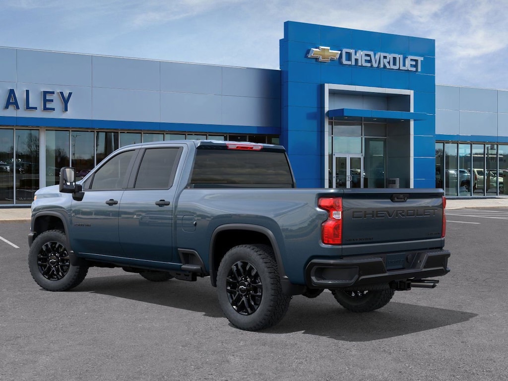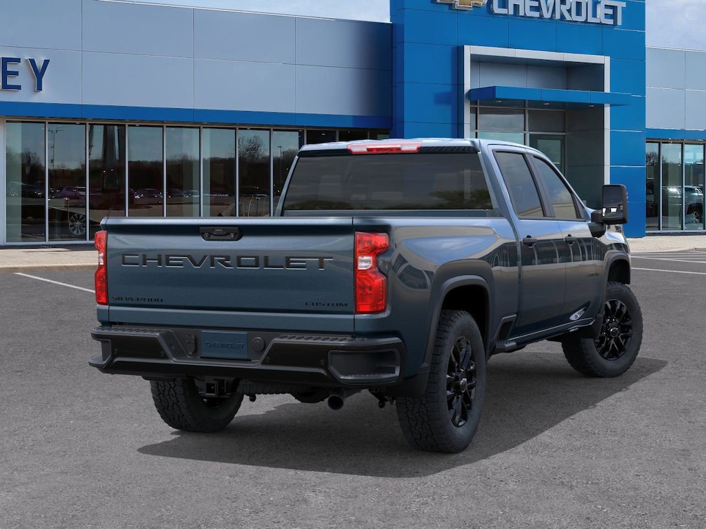 Lakeshore Blue Metallic 2026 Chevrolet Silverado 2500HD Custom 4WD 10-Speed Automatic 6.6L V8 10-Way Power Driver Seat Adjuster with Lumbar, 120-Volt Bed Mounted Power Outlet, 120-Volt Interior Power Outlet, 170 Amp Alternator, 2-Speed Electronic Shift Transfer Case, 220 Amp Alternator, 3.5 Diagonal Monochromatic Display DIC, 3.73 Rear Axle Ratio, 4-Wheel Disc Brakes, 6 Speakers, 6-Speaker Audio System, 720 Cold-Cranking Amps Heavy-Duty Battery, ABS brakes, Air Conditioning, Alloy wheels, AM/FM radio: SiriusXM with 360L, Apple CarPlay/Android Auto, Auto High-beam Headlights, Auto-Dimming Inside Rear-View Mirror, Black Chevytec Spray-on Bedliner, Black Mirror Caps, Black Tailgate Lettering, Bluetooth® For Phone, Brake assist, Chevrolet Connected Access Capable, Cloth Seat Trim, Color-Keyed Carpeting Floor Covering, Compass, Custom Blackout Package, Custom Convenience Package, Custom Value Package, CX Safety Package, Deep-Tinted Glass, Delay-off headlights, Deleted Mobile Service Plus, Driver door bin, Dual front impact airbags, Dual front side impact airbags, Dual Rear USB Ports (charge Only), Durabed Pickup Bed, Electric Rear-Window Defogger, Electronic Cruise Control with Set and Resume Speed, Electronic Stability Control, Emergency communication system: OnStar, EZ Lift Power Lock and Release Tailgate, Front 40/20/40 Split-Bench Seats with Lockable Storage, Front anti-roll bar, Front Center Armrest w/Storage, Front License Plate Kit, Front reading lights, Front Rubberized Vinyl Floor Mats, Front wheel independent suspension, Fully automatic headlights, Gooseneck/5th Wheel Prep Package, HD Rear Vision Camera, Heated and Auto-Dimming Vertical Trailering Mirrors, Heated door mirrors, Heated Vertical Trailering Mirrors, Hill Descent Control, Illuminated entry, Lane Change Alert with Side Blind Zone Alert, LED Cargo Area Lighting, LED Smoked Amber Roof Marker Lamps, Locking Tailgate, Low tire pressure warning, Manual Tailgate Function with No EZ Lift, Manual Tilt-Wheel Steering Column, Occupant sensing airbag, Off-Road Suspension, OnStar Services Capable, Outside temperature display, Overhead airbag, Overhead console, Panic alarm, Passenger door bin, Passenger vanity mirror, Power Door Locks, Power door mirrors, Power Front Windows with Driver Express Up/Down, Power Front Windows with Passenger Express Down, Power Rear Windows with Express Down, Power steering, Power windows, Preferred Equipment Group 1CX, Premium audio system: Chevrolet Infotainment 3, Push Button Start, Radio: Chevrolet Infotainment 3 System, Rear 60/40 Folding Bench Seat (folds Up), Rear Cross Traffic Alert, Rear reading lights, Rear Rubberized Vinyl Floor Mats, Rear step bumper, Remote Keyless Entry, Remote keyless entry, Remote Vehicle Starter System, SiriusXM with 360L Trial Subscription, Snow Plow Prep/Camper Package, Speed control, Split folding rear seat, Standard Tailgate, Suspension Package, Tachometer, Tilt steering wheel, Traction control, Trip computer, Turn signal indicator mirrors, Ultrasonic Front and Rear Park Assist, Unauthorized Entry Theft-Deterrent System, Variably intermittent wipers, Voltmeter, Wheels: 20 10-Spoke Machined Aluminum, Wheels: 20 High Gloss Black Painted, Wi-Fi Hotspot Capable, Wireless Phone Projection, Z71 Off-Road Package.