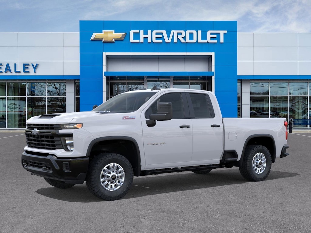 Summit White 2026 Chevrolet Silverado 2500HD Work Truck 4WD 10-Speed Automatic 6.6L V8 17 Machined Aluminum Wheels, 170 Amp Alternator, 2-Speed Electronic Shift Transfer Case, 220 Amp Alternator, 3 Years SiriusXM, 3.5 Diagonal Monochromatic Display DIC, 3.73 Rear Axle Ratio, 4-Wheel Disc Brakes, 6 Speakers, 6-Speaker Audio System, 720 Cold-Cranking Amps Heavy-Duty Battery, ABS brakes, Air Conditioning, AM/FM radio, Apple CarPlay/Android Auto, Auto High-beam Headlights, Black Chevytec Spray-on Bedliner, Black Front Bumper, Black Mirror Caps, Black Rear Bumper, Black Work Step (LPO), Bluetooth® For Phone, Brake assist, Chevrolet Connected Access Capable, Compass, Delay-off headlights, Driver door bin, Dual front impact airbags, Dual front side impact airbags, Durabed Pickup Bed, Electronic Cruise Control with Set and Resume Speed, Electronic Stability Control, Emergency communication system: OnStar, Front 40/20/40 Split-Bench Seats with Lockable Storage, Front anti-roll bar, Front Black Bowtie Emblem, Front Center Armrest w/Storage, Front License Plate Kit, Front reading lights, Front wheel independent suspension, Fully automatic headlights, HD Rear Vision Camera, High-Visibility Vertical Trailering Mirrors, Hill Descent Control, Illuminated entry, LED Smoked Amber Roof Marker Lamps, Locking Tailgate, Low tire pressure warning, Manual Tailgate Function with No EZ Lift, Manual Tilt-Wheel Steering Column, Mobile Service Plus, Occupant sensing airbag, Off-Road Suspension, OnStar Services Capable, Outside temperature display, Overhead airbag, Overhead console, Panic alarm, Passenger door bin, Passenger vanity mirror, Power Door Locks, Power Front Windows with Driver Express Up/Down, Power Rear Windows with Express Down, Power steering, Power windows, Preferred Equipment Group 1WT, Premium audio system: Chevrolet Infotainment 3, Push Button Start, Radio: Chevrolet Infotainment 3 System, Rear 60/40 Folding Bench Seat (folds Up), Rear reading lights, Rear step bumper, Remote Keyless Entry, Remote keyless entry, Rubberized-Vinyl Floor Covering, SiriusXM Trial Subscription, Snow Plow Prep/Camper Package, Solar Absorbing Tinted Glass, Speed control, Split folding rear seat, Standard Tailgate, Suspension Package, Tachometer, Tilt steering wheel, Traction control, Trip computer, Upfitter Switch Kit (5), Variably intermittent wipers, Vinyl Seat Trim, Voltmeter, Wheels: 17 Silver Painted Steel, Wi-Fi Hotspot Capable, Wireless Phone Projection, Z71 Off-Road Package.