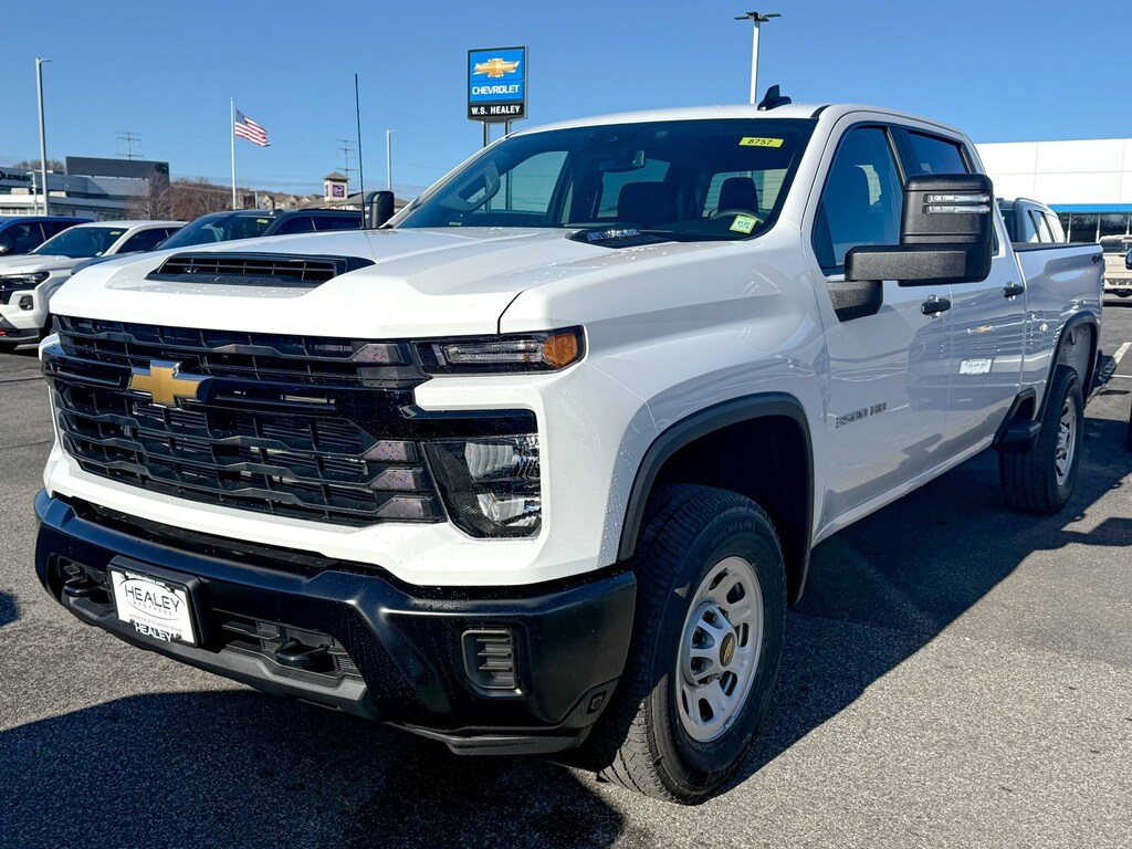 Summit White 2026 Chevrolet Silverado 3500HD Work Truck 4WD 10-Speed Automatic Duramax 6.6L V8 Turbodiesel 120-Volt Bed Mounted Power Outlet, 120-Volt Interior Power Outlet, 170 Amp Alternator, 18 Painted Steel Wheels, 2-Speed Electronic Shift Transfer Case, 220 Amp Alternator, 3.5 Diagonal Monochromatic Display DIC, 4-Way Manual Driver Seat Adjuster, 4-Way Manual Passenger Seat Adjuster, 4-Wheel Disc Brakes, 6 Speakers, 6-Speaker Audio System Feature, ABS brakes, Air Conditioning, AM/FM radio, Apple CarPlay/Android Auto, Auto High-beam Headlights, Auto-Dimming Inside Rear-View Mirror, Black Front Bumper, Black Mirror Caps, Black Rear Bumper, Bluetooth® For Phone, Brake assist, Chevrolet Connected Access Capable, Compass, Compass Located in Instrument Cluster, Deep-Tinted Glass, Delay-off headlights, Deleted Mobile Service Plus, Driver door bin, Dual front impact airbags, Dual front side impact airbags, Durabed Pickup Bed, Electric Rear-Window Defogger, Electronic Stability Control, Emergency communication system, Engine Block Heater, Exhaust Brake, EZ Lift Power Lock and Release Tailgate, Front 40/20/40 Split-Bench Seats with Lockable Storage, Front anti-roll bar, Front Center Armrest w/Storage, Front License Plate Kit, Front reading lights, Front wheel independent suspension, Fully automatic headlights, HD Rear Vision Camera, Heavy-Duty 80 Amp-Hour Battery, High-Visibility Molded in Black Outside Mirrors, Illuminated entry, Locking Tailgate, Low tire pressure warning, Manual Tailgate Function with No EZ Lift, Manual Tilt-Wheel Steering Column, Occupant sensing airbag, OnStar Services Capable, Outside Power-Adjustable Mirrors, Outside temperature display, Overhead airbag, Overhead console, Panic alarm, Passenger door bin, Passenger vanity mirror, Perimeter Lighting, Power Door Locks, Power Front Windows with Driver Express Up/Down, Power Rear Windows with Express Down, Power steering, Power windows, Power-Adjustable Outside Mirrors, Preferred Equipment Group 1WT, Premium audio system: Chevrolet Infotainment System 3, Push Button Start, Radio: Chevrolet Infotainment 3 System, Rear 60/40 Folding Bench Seat (folds Up), Rear reading lights, Rear step bumper, Remote Keyless Entry, Remote keyless entry, Rubberized-Vinyl Floor Covering, Snow Plow Prep/Camper Package, Solar Absorbing Tinted Glass, Speed control, Split folding rear seat, Standard Tailgate, Steering Wheel Mounted Electronic Cruise Control, Suspension Package, Tachometer, Tilt steering wheel, Traction control, Trip computer, Upfitter Switch Kit (5), Variably intermittent wipers, Vinyl Seat Trim, Voltmeter, Wi-Fi Hotspot Capable, Winter Grille Cover, WT Convenience Package.