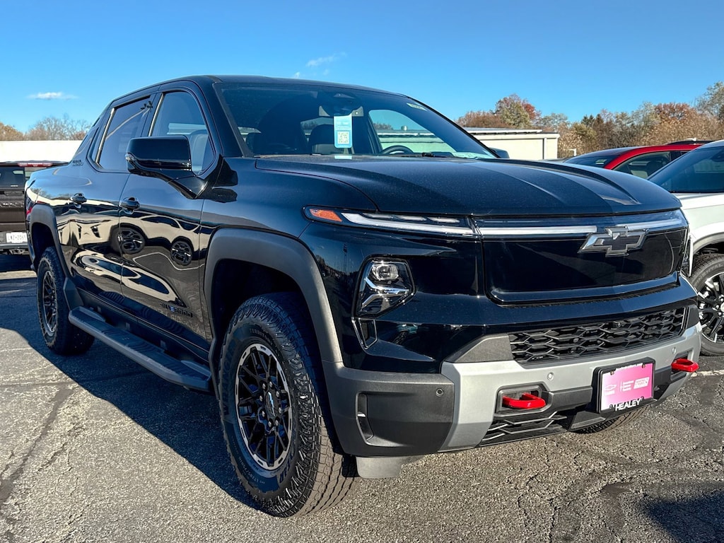 Black 2026 Chevrolet Silverado EV Trail Boss AWD 1-Speed Automatic Electric ZEV 625hp 4-Wheel Disc Brakes, 6 Speakers, 6-Speaker Audio System Feature, 7.2 kW AC Power Split Phase Offboarding Power, 8-Way Power Driver Seat Adjuster, ABS brakes, Air Conditioning, Alloy wheels, AM/FM radio: SiriusXM with 360L, Auto High-beam Headlights, Auto-dimming Rear-View mirror, Automatic temperature control, Axle Ratio: TBD, Bed Mounted Power Outlet 240-Volt, Bed Mounted Power Outlets (4) 120-Volt, Bose Premium 7-Speaker Audio System, Brake assist, Comfort & Convenience Package, Delay-off headlights, Deleted Mobile Service Plus, Driver & Front Passenger Ventilated Seats, Driver 2-Way Power Lumbar Seat Adjuster, Driver 4-Way Power Lumbar Seat Adjuster, Driver door bin, Driver Memory, Driver vanity mirror, Dual front impact airbags, Dual front side impact airbags, Electronic Stability Control, Emergency communication system: OnStar, Evotex Seat Trim, Extended Range Battery Pack, Four wheel independent suspension, Front anti-roll bar, Front Bucket Seats, Front Center Armrest w/Storage, Front dual zone A/C, Front License Plate Bracket Mounting Package, Front Passenger 4-Way Manual Seat Adjuster, Front Passenger 4-Way Power Lumbar Seat Adjuster, Front Passenger 8-Way Power Seat Adjuster, Front reading lights, Fully automatic headlights, Garage door transmitter, Heated door mirrors, Heated Front Driver & Passenger Seats, Heated front seats, Heated Rear Outboard Passenger Cushion, Heated steering wheel, High Stance Suspension, LED Reflective Windshield Collision Alert, Low tire pressure warning, Manual Tailgate Function w/EZ Lift, Multi-Flex Tailgate, Navigation System, Occupant sensing airbag, Outside Heated Power-Adjustable Mirrors, Outside temperature display, Overhead airbag, Overhead console, Panic alarm, Passenger door bin, Passenger vanity mirror, Plus Package, Power door mirrors, Power driver seat, Power steering, Power Tilt & Telescopic Steering Column w/Memory, Power windows, Preferred Equipment Group 2TR, Radio data system, Radio: 17.7 Diagonal Advanced Color LCD Display, Rain sensing wipers, Rear reading lights, Rear step bumper, Rear window defroster, Remote keyless entry, Security system, SiriusXM w/360L Trial Subscription, Speed control, Speed-sensing steering, Split folding rear seat, Sport steering wheel, Steering wheel mounted audio controls, Telescoping steering wheel, Tilt steering wheel, Traction control, Trip computer, Variably intermittent wipers, Wheels: 18 x 8.5.