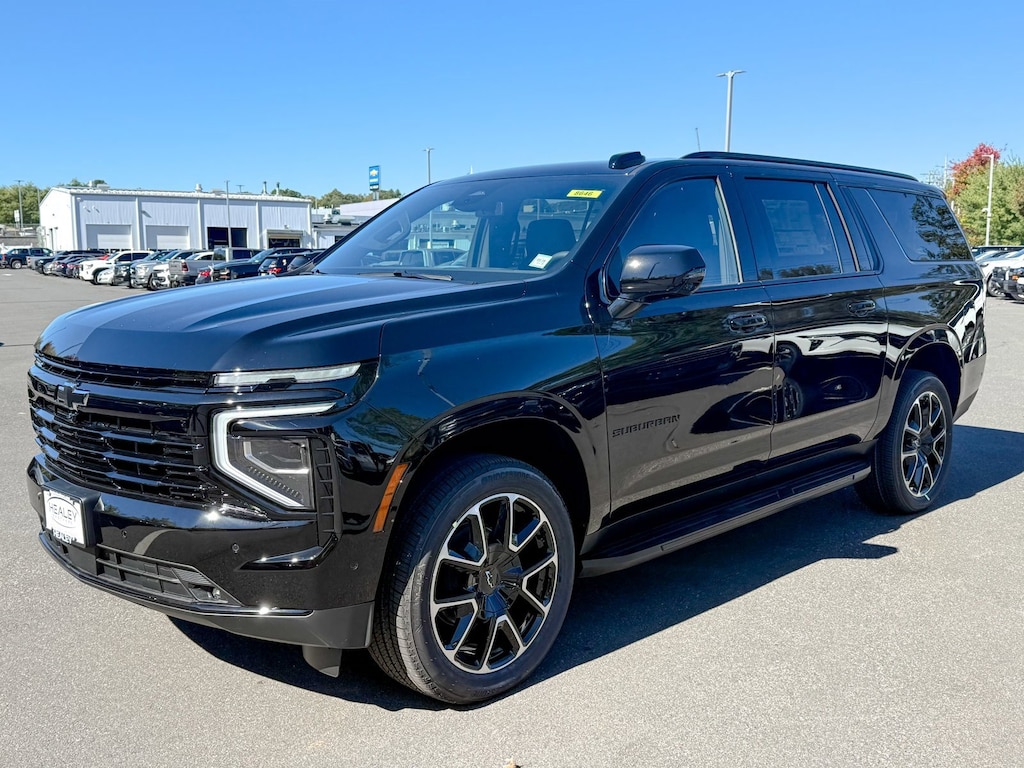 Black 2026 Chevrolet Suburban RST 4WD 10-Speed Automatic with Overdrive EcoTec3 5.3L V8 2-Speed Active Electronic AutoTrac Transfer Case, 2-Way Driver Power Lumbar Seat Adjuster, 2-Way Front Passenger Power Lumbar Seat Adjuster, 2nd Row Pwr Release 60/40 Split-Folding Bench Seat, 3.23 Rear Axle Ratio, 3rd Row 60/40 Power-Folding Split-Bench, 3rd row seats: split-bench, 4-Wheel Disc Brakes, 6 Speakers, 6-Speaker Audio System, 8-Way Power Driver Seat Adjuster, 8-Way Power Front Passenger Seat Adjuster, ABS brakes, Advanced Trailering Package, Air Conditioning, Alloy wheels, AM/FM radio: SiriusXM with 360L, Apple CarPlay/Android Auto, Auto High-beam Headlights, Auto-Dimming Inside Rear-View Mirror, Auto-dimming Rear-View mirror, Automatic temperature control, Blind Zone Steering Assist w/Trailering, Bose 10-Speaker Surround w/CenterPoint, Brake assist, Bright Front & Rear Door Sill Plates, Bumpers: body-color, Comfort Package, Compass, Delay-off headlights, Driver door bin, Driver vanity mirror, Dual Exhaust System, Dual front impact airbags, Dual front side impact airbags, Electronic Stability Control, Emergency communication system: OnStar Services capable, Exterior Parking Camera Rear, Extra Capacity Cooling System, Four wheel independent suspension, Front anti-roll bar, Front Bucket Seats, Front Center Armrest, Front dual zone A/C, Front fog lights, Front LED Fog Lamps, Front reading lights, Fully automatic headlights, Garage door transmitter, Heated 2nd Row Outboard Seats, Heated door mirrors, Heated Driver & Front Passenger Seats, Heated front seats, Heated Power-Adjustable Outside Mirrors, Heated Steering Wheel, Hill Descent Control, Hitch View w/Pan/Zoom Image Adjustment, Illuminated entry, Integrated Trailer Brake Controller, Interior Camera, LED Headlamps w/LED Daytime Running Lamps, LED Tail Lamps, License Plate Front Mounting Package, Low tire pressure warning, Max Trailering Package, Memory seat, Memory Settings, Memory Settings For Driver, Mobile Service Plus, Navigation system: Google built-in compatibility (select service plan required, terms and limitations apply), Occupant sensing airbag, Outside temperature display, Overhead airbag, Overhead console, Panic alarm, Passenger door bin, Passenger vanity mirror, Perforated Leather Seating Surfaces, Power door mirrors, Power driver seat, Power Liftgate, Power passenger seat, Power steering, Power windows, Preferred Equipment Group 1SP, Premium Smooth Ride Suspension, Radio data system, Radio: 17.7 Diagonal Advanced Color LCD Display, Rain sensing wipers, Rear air conditioning, Rear anti-roll bar, Rear Power Liftgate, Rear reading lights, Rear seat center armrest, Rear window defroster, Rear window wiper, Remote keyless entry, RST Exterior Features, Security system, SiriusXM w/360L Trial Subscription, Smart Trailer Integration Indicator, Speed control, Speed-sensing steering, Split folding rear seat, Spoiler, Steering wheel mounted audio controls, Tachometer, Telescoping steering wheel, Tilt steering wheel, Traction control, Trip computer, Universal Home Remote, Variably intermittent wipers, Voltmeter, Wheel Locks (Set of 4) (LPO), Wheels: 22 x 9 Bright Machined, Wireless Apple CarPlay/Wireless Android Auto, Wireless Phone Charging.