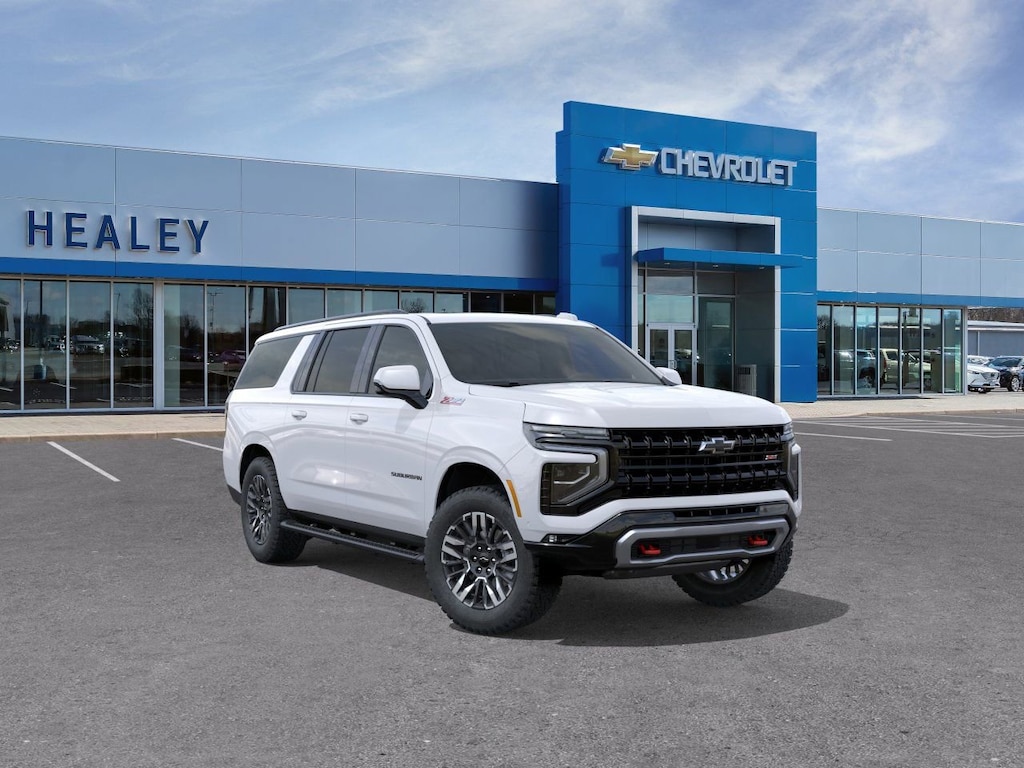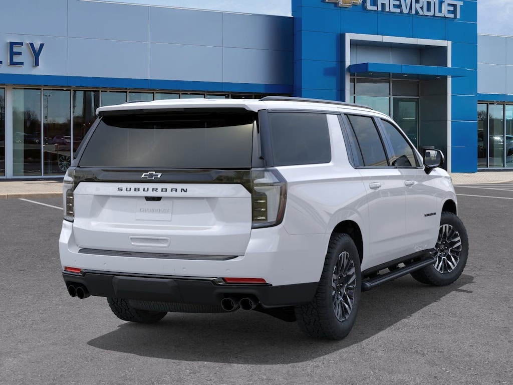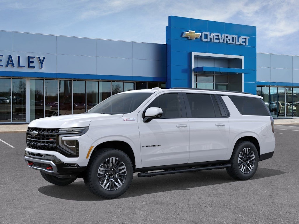 Summit White 2026 Chevrolet Suburban Z71 4WD 10-Speed Automatic with Overdrive EcoTec3 5.3L V8 2-Speed Active Electronic AutoTrac Transfer Case, 2-Way Driver Power Lumbar Seat Adjuster, 2-Way Front Passenger Power Lumbar Seat Adjuster, 2nd Row Power Release 60/40 Split-Folding Bench Seat, 3.23 Rear Axle Ratio, 3rd Row 60/40 Power-Folding Split-Bench, 3rd row seats: split-bench, 4-Wheel Disc Brakes, 6 Speakers, 6-Speaker Audio System, 8-Way Power Driver Seat Adjuster, 8-Way Power Front Passenger Seat Adjuster, ABS brakes, Advanced Trailering Package, Air Conditioning, Alloy wheels, AM/FM radio: SiriusXM with 360L, Apple CarPlay/Android Auto, Auto High-beam Headlights, Auto-Dimming Inside Rear-View Mirror, Auto-dimming Rear-View mirror, Automatic temperature control, Black Tubular Assist Steps, Blind Zone Steering Assist with Trailering, Bose 10-Speaker Surround with CenterPoint, Brake assist, Bright Front and Rear Door Sill Plates, Bumpers: body-color, Comfort Package, Compass, Delay-off headlights, Driver door bin, Driver vanity mirror, Dual Exhaust System, Dual front impact airbags, Dual front side impact airbags, Dual-Pane Power Panoramic Sunroof, Electronic Stability Control, Emergency communication system: OnStar Services capable, Exterior Parking Camera Rear, Four wheel independent suspension, Front anti-roll bar, Front Bucket Seats, Front Center Armrest, Front dual zone A/C, Front fog lights, Front High-Approach Angle Fascia, Front LED Fog Lamps, Front reading lights, Fully automatic headlights, Garage door transmitter, Heated 2nd Row Outboard Seats, Heated door mirrors, Heated Driver and Front Passenger Seats, Heated front seats, Heated Power-Adjustable Outside Mirrors, Heated Steering Wheel, Heavy-Duty Air Filter, Hill Descent Control, Hitch View with Pan/Zoom Image Adjustment, Illuminated entry, Integrated Trailer Brake Controller, Interior Camera, Leather-Appointed Seating, LED Headlamps with LED Daytime Running Lamps, LED Tail Lamps, Low tire pressure warning, Max Trailering Package, Memory seat, Memory Settings, Memory Settings For Driver, Mobile Service Plus, Navigation system: Google built-in compatibility (select service plan required, terms and limitations apply), Occupant sensing airbag, Outside temperature display, Overhead airbag, Overhead console, Panic alarm, Passenger door bin, Passenger vanity mirror, Power door mirrors, Power driver seat, Power Liftgate, Power passenger seat, Power Release 2nd Row Bucket Seats, Power steering, Power windows, Premium Smooth Ride Suspension, Radio data system, Radio: 17.7 Diagonal Advanced Color LCD Display, Rain sensing wipers, Rear air conditioning, Rear anti-roll bar, Rear Power Liftgate, Rear reading lights, Rear seat center armrest, Rear window defroster, Rear window wiper, Red Recovery Hooks, Remote keyless entry, Security system, SiriusXM with 360L Trial Subscription, Smart Trailer Integration Indicator, Speed control, Speed-sensing steering, Split folding rear seat, Spoiler, Steering wheel mounted audio controls, Tachometer, Telescoping steering wheel, Tilt steering wheel, Traction control, Trip computer, Universal Home Remote, Variably intermittent wipers, Voltmeter, Wheels: 20 x 9 Bright Machined Aluminum, Wireless Apple CarPlay/Wireless Android Auto, Wireless Phone Charging, Z71 Exterior Features.