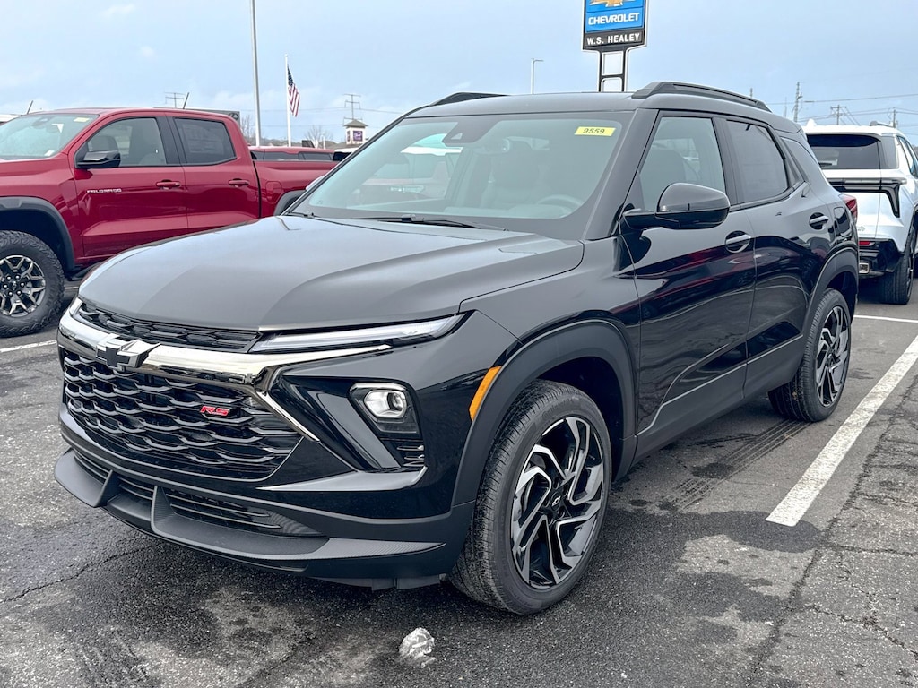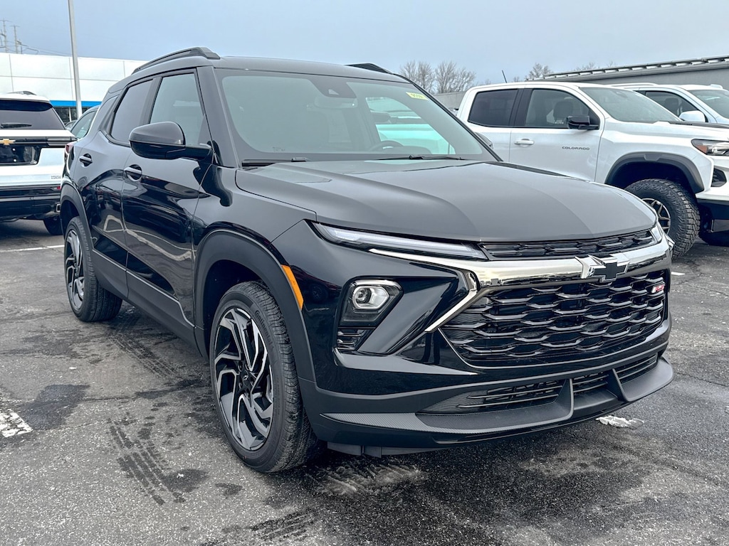 Mosaic Black Metallic 2026 Chevrolet TrailBlazer RS AWD 9-Speed Automatic 1.3L I3 Turbocharged DOHC 12V LEV3-SULEV30 155hp 1 Type-A and 1 Type-C USB Charging-Only Ports, 1 Type-A and 1 Type-C USB Ports, 120-Volt Power Outlet, 2-Way Power Driver Lumbar Seat Adjuster, 3.17 Final Drive Axle Ratio, 4-Way Manual Front Passenger Seat Adjuster, 4-Wheel Disc Brakes, 6 Speakers, 6-Speaker Audio System Feature with Amplifier, 8-Way Power Driver Seat Adjuster, ABS brakes, Air Conditioning, Alloy wheels, AM/FM radio: SiriusXM, Auto High-beam Headlights, Brake assist, Bumpers: body-color, Cabin Humidity Sensor, Compass, Convenience Package, Delay-off headlights, Deleted Mobile Service Plus, Driver and Front Passenger Illuminated Vanity Mirrors, Driver Confidence Package, Driver door bin, Driver vanity mirror, Dual front impact airbags, Dual front side impact airbags, Dual-Pane Panoramic Power Sunroof, Electronic Stability Control, Emergency communication system: OnStar and Chevrolet connected services capable, Evotex Seat Trim, Exterior Parking Camera Rear, Flat-Folding Front Passenger Seatback, Front anti-roll bar, Front Bucket Seats, Front Center Armrest, Front License Plate Bracket, Front reading lights, Front wheel independent suspension, Fully automatic headlights, Hands Free Power Programmable Liftgate, Heated door mirrors, Heated Driver and Front Passenger Seats, Heated front seats, Heated steering wheel, Illuminated entry, Inside Rear-View Auto-Dimming Mirror, Knee airbag, Lane Change Alert with Side Blind Zone Alert, Low tire pressure warning, Mechanical Jack with Tools, Mosaic Black Metallic Roof, Occupant sensing airbag, Overhead airbag, Overhead console, Panic alarm, Passenger door bin, Passenger vanity mirror, Power door mirrors, Power driver seat, Power steering, Power windows, Preferred Equipment Group 1RS, Radio data system, Radio: AM/FM Stereo Audio System, Rear Cross Traffic Alert, Rear Park Assist, Rear seat center armrest, Rear side impact airbag, Rear window defroster, Rear window wiper, Remote keyless entry, Ride and Handling Suspension, Security system, Single-Zone Automatic Climate Control, SiriusXM Trial Subscription, Speed control, Split folding rear seat, Spoiler, Steering wheel mounted audio controls, Tachometer, Telescoping steering wheel, Tilt steering wheel, Traction control, Trip computer, Variably intermittent wipers, Wheels: 19 High Gloss Black Machined Aluminum, Wireless Apple CarPlay/Android Auto, Wireless Charging.