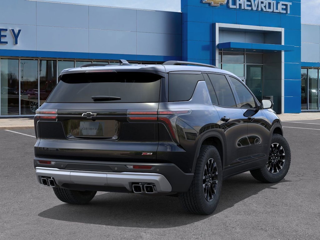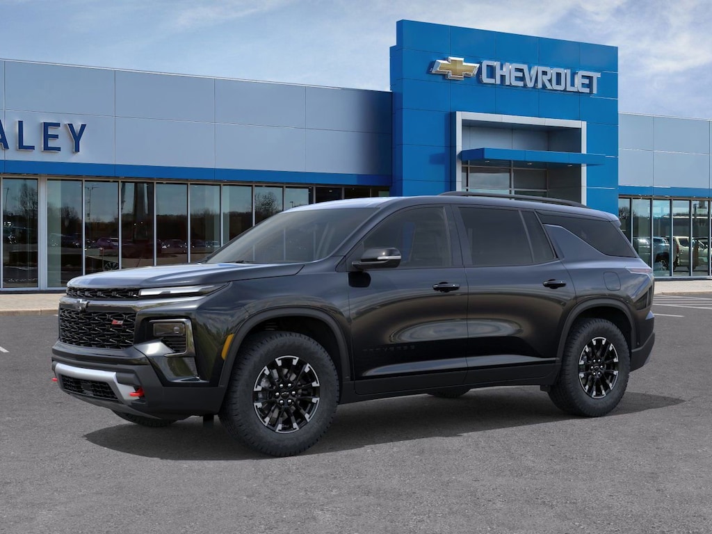 Mosaic Black Metallic 2026 Chevrolet Traverse Z71 AWD 8-Speed Automatic 2.5L DOHC 1st and 2nd Row All-Weather Floor Liners, 3rd Row All-Weather Floor Liner, 3rd row seats: split-bench, 4-Way Manual Front Passenger Seat Adjuster, 4-Wheel Disc Brakes, 6 Speakers, 6-Speaker Audio System Feature, 8-Way Power Driver Seat Adjuster, ABS brakes, Air Conditioning, Alloy wheels, AM/FM radio: SiriusXM with 360L, Apple CarPlay/Android Auto, Auto High-beam Headlights, Automatic temperature control, Brake assist, Child-Seat-Sensing Airbag, Compass, Delay-off headlights, Driver door bin, Driver vanity mirror, Dual front impact airbags, Dual front side impact airbags, Electronic Stability Control, Emergency communication system: OnStar, Evotex Seat Trim, Floor Liner Package, Four wheel independent suspension, Front anti-roll bar, Front Bucket Seats, Front Center Armrest, Front dual zone A/C, Front reading lights, Fully automatic headlights, Heated door mirrors, Heated Driver and Front Passenger Seats, Heated front seats, Heated steering wheel, Illuminated entry, Integrated Cargo Liner, Low tire pressure warning, Mobile Service Plus, Navigation System, Occupant sensing airbag, Outside temperature display, Overhead airbag, Overhead console, Panic alarm, Passenger door bin, Passenger vanity mirror, Power door mirrors, Power driver seat, Power Liftgate, Power steering, Power windows, Preferred Equipment Group 2Z7, Radio data system, Radio: : Audio System w/17.7 Diagonal Display, Rear air conditioning, Rear anti-roll bar, Rear reading lights, Rear window defroster, Rear window wiper, Remote keyless entry, Security system, SiriusXM with 360L Trial Subscription, Speed control, Speed-sensing steering, Spoiler, Steering wheel mounted audio controls, Tachometer, Telescoping steering wheel, Tilt steering wheel, Traction control, Trip computer, Turn signal indicator mirrors, Variably intermittent wipers, Voltmeter, Wheels: : 18 High Gloss Black Painted Aluminum.