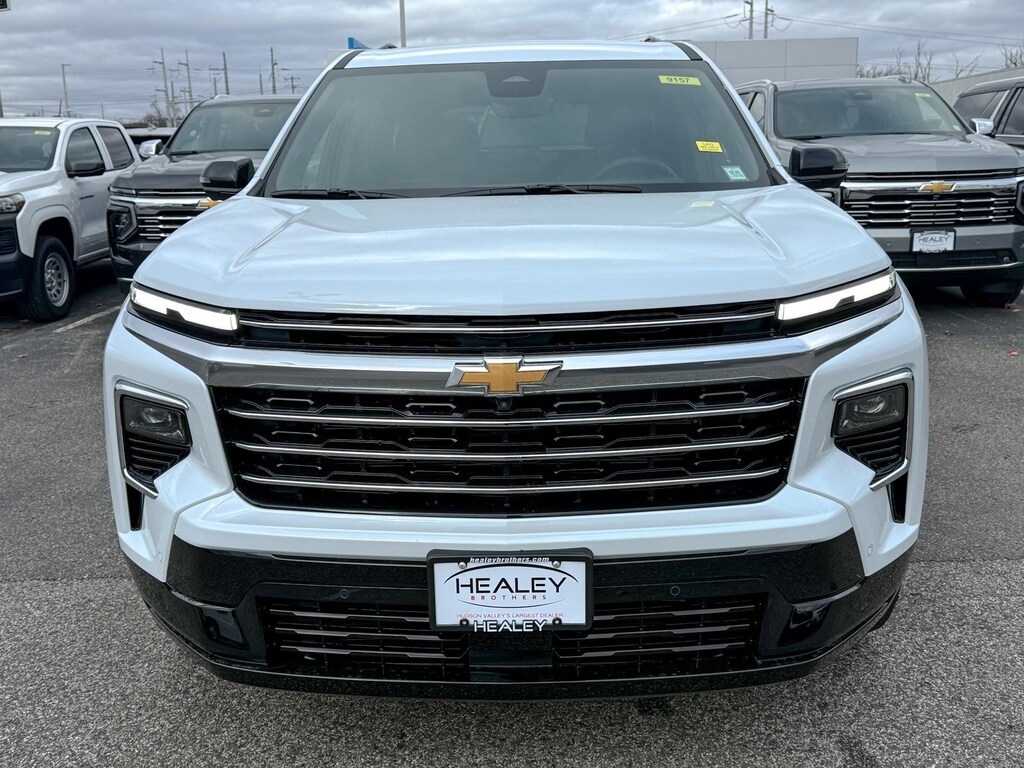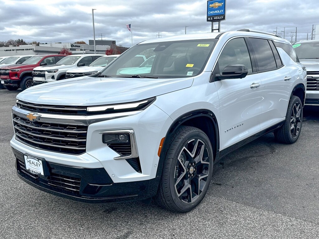 Polar White Tricoat 2026 Chevrolet Traverse High Country AWD 8-Speed Automatic 2.5L DOHC 12 Speakers, 1st & 2nd Row All-Weather Floor Liners (LPO), 3rd Row All-Weather Floor Liner (LPO), 3rd row seats: split-bench, 4-Wheel Disc Brakes, 6-Way Power Front Passenger Seat Adjuster, 8-Way Power Driver Seat Adjuster, ABS brakes, Air Conditioning, Alloy wheels, AM/FM radio: SiriusXM with 360L, Apple CarPlay/Android Auto, Auto High-beam Headlights, Auto tilt-away steering wheel, Auto-dimming door mirrors, Automatic temperature control, Bose Premium 12-Speaker Audio System Feature, Brake assist, Bumpers: body-color, Child-Seat-Sensing Airbag, Compass, Delay-off headlights, Driver 4-Way Power Lumbar Seat Adjuster, Driver door bin, Driver vanity mirror, Dual front impact airbags, Dual front side impact airbags, Electronic Stability Control, Emergency communication system: OnStar, Exterior Parking Camera Rear, Floor Liner Package (LPO), Four wheel independent suspension, Front anti-roll bar, Front Bucket Seats, Front Center Armrest, Front dual zone A/C, Front Passenger 4-Way Power Lumbar Seat Adjuster, Front reading lights, Fully automatic headlights, Garage door transmitter, Heated door mirrors, Heated Driver & Front Passenger Seats, Heated front seats, Heated rear seats, Heated steering wheel, Illuminated entry, Integrated Cargo Liner (LPO), Low tire pressure warning, Memory seat, Mobile Service Plus, Navigation System, Occupant sensing airbag, Outside temperature display, Overhead airbag, Overhead console, Panic alarm, Passenger door bin, Passenger vanity mirror, Perforated Leather-Appointed Seat Trim, Power door mirrors, Power driver seat, Power Liftgate, Power passenger seat, Power steering, Power windows, Preferred Equipment Group 2LZ, Radio data system, Radio: Audio System w/17.7 Diagonal Display, Rain sensing wipers, Rear air conditioning, Rear anti-roll bar, Rear reading lights, Rear window defroster, Rear window wiper, Remote keyless entry, Security system, SiriusXM w/360L Trial Subscription, Speed control, Speed-sensing steering, Spoiler, Steering wheel memory, Steering wheel mounted audio controls, Tachometer, Telescoping steering wheel, Tilt steering wheel, Traction control, Trip computer, Turn signal indicator mirrors, Variably intermittent wipers, Ventilated Driver & Front Passenger Seats, Ventilated front seats, Voltmeter, Wheels: 22 High-Gloss Black Aluminum.