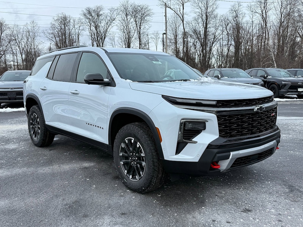 Polar White Tricoat 2026 Chevrolet Traverse Z71 AWD 8-Speed Automatic 2.5L DOHC 3 Years SiriusXM, 3rd row seats: split-bench, 4-Way Manual Front Passenger Seat Adjuster, 4-Wheel Disc Brakes, 6 Speakers, 6-Speaker Audio System Feature, 8-Way Power Driver Seat Adjuster, ABS brakes, Active Noise Cancellation, Air Conditioning, Alloy wheels, AM/FM radio: SiriusXM with 360L, Apple CarPlay/Android Auto, Auto High-beam Headlights, Automatic temperature control, Bose Premium 12-Speaker Audio System Feature, Brake assist, Child-Seat-Sensing Airbag, Compass, Delay-off headlights, Driver Attention Assist, Driver Confidence Package, Driver door bin, Driver vanity mirror, Dual front impact airbags, Dual front side impact airbags, Electronic Stability Control, Emergency communication system: OnStar, Enhanced Automatic Parking Assist, Enhanced Driving Package, Evotex Seat Trim, Four wheel independent suspension, Front anti-roll bar, Front Bucket Seats, Front Center Armrest, Front dual zone A/C, Front reading lights, Fully automatic headlights, HD Surround Vision, Heated door mirrors, Heated Driver and Front Passenger Seats, Heated front seats, Heated steering wheel, Illuminated entry, Key Card, Low tire pressure warning, Mobile Service Plus, Navigation System, Occupant sensing airbag, Outside temperature display, Overhead airbag, Overhead console, Panic alarm, Passenger door bin, Passenger vanity mirror, Power door mirrors, Power driver seat, Power Liftgate, Power Outlet, Power steering, Power windows, Preferred Equipment Group 2Z7, Radio data system, Radio: : Audio System w/17.7 Diagonal Display, Rear air conditioning, Rear anti-roll bar, Rear Camera Mirror, Rear Pedestrian Alert, Rear reading lights, Rear window defroster, Rear window wiper, Remote keyless entry, Security system, SiriusXM with 360L Trial Subscription, Speed control, Speed-sensing steering, Spoiler, Steering wheel mounted audio controls, Super Cruise, Tachometer, Telescoping steering wheel, Tilt steering wheel, Traction control, Traffic Sign Recognition, Trip computer, Turn signal indicator mirrors, Variably intermittent wipers, Voltmeter, Wheels: : 18 High Gloss Black Painted Aluminum.