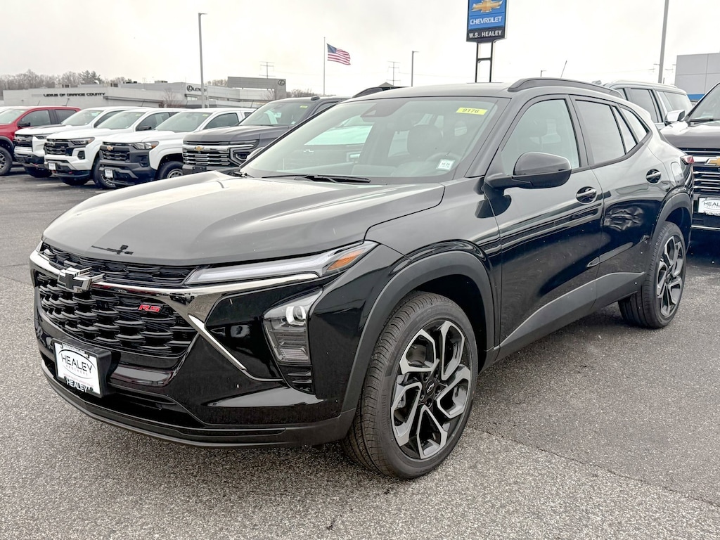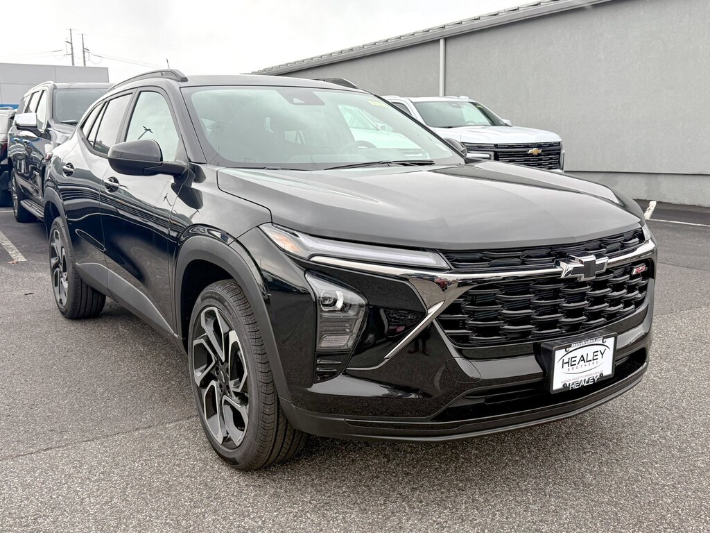 Black Metallic 2026 Chevrolet Trax 2RS FWD 6-Speed Automatic ECOTEC 1.2L Turbo 2-Way Adjustable Front Head Restraints, 2-Way Power Driver Lumbar Seat Adjuster, 3.50 Final Drive Axle Ratio, 4-Way Manual Front Passenger Seat Adjuster, 4-Wheel Disc Brakes, 6 Speakers, 6-Speaker Audio System Feature, 8-Way Power Driver Seat Adjuster, ABS brakes, Adaptive Cruise Control, Air Conditioning, Alloy wheels, AM/FM radio: SiriusXM, Auto High-beam Headlights, Automatic temperature control, Brake assist, Bumpers: body-color, Compass, Delay-off headlights, Driver Confidence Package, Driver door bin, Driver vanity mirror, Dual front impact airbags, Dual front side impact airbags, Electronic Stability Control, Emergency communication system: OnStar One Essentials, Evotex Seat Trim, Exterior Parking Camera Rear, Front and Rear Jet Black All-Weather Floor Mats, Front anti-roll bar, Front Bucket Seats, Front Center Armrest, Front reading lights, Front wheel independent suspension, Fully automatic headlights, Heated door mirrors, Heated Driver and Front Passenger Seats, Heated front seats, Heated steering wheel, Illuminated entry, Lane Change Alert with Side Blind Zone Alert, Leather steering wheel, Low tire pressure warning, Occupant sensing airbag, Outside temperature display, Overhead airbag, Overhead console, Panic alarm, Passenger door bin, Passenger vanity mirror, Power door mirrors, Power driver seat, Power steering, Power windows, Premium audio system: Chevrolet Infotainment 3, Radio data system, Radio: AM/FM Stereo Audio System, Rear Cross Traffic Alert, Rear Park Assist, Rear window defroster, Rear window wiper, Remote keyless entry, Security system, SiriusXM Trial Subscription, Speed control, Split folding rear seat, Spoiler, Sport steering wheel, Steering wheel mounted audio controls, Tachometer, Telescoping steering wheel, Tilt steering wheel, Traction control, Trip computer, Variably intermittent wipers, Wheels: 19 Black-Painted Machined Aluminum, Wireless Apple CarPlay/Wireless Android Auto.