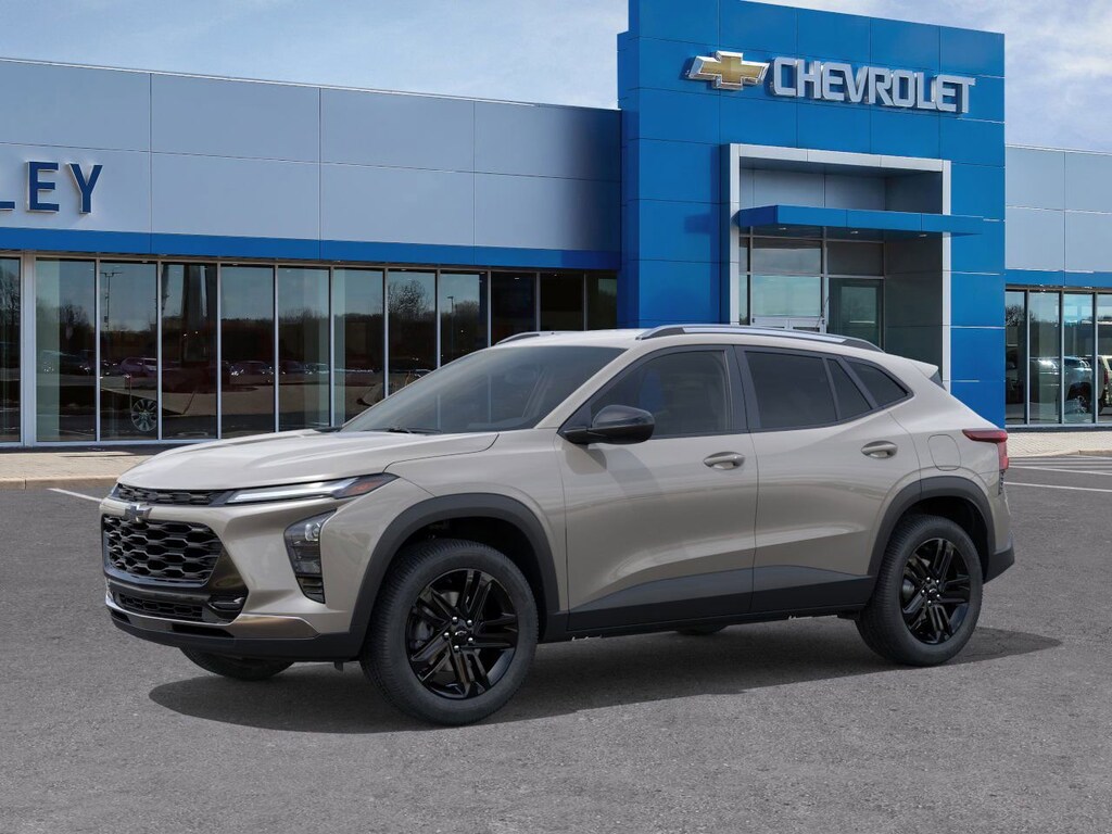White Sands 2026 Chevrolet Trax ACTIV FWD 6-Speed Automatic ECOTEC 1.2L Turbo 2-Way Adjustable Front Head Restraints, 2-Way Power Driver Lumbar Seat Adjuster, 3.50 Final Drive Axle Ratio, 4-Way Manual Front Passenger Seat Adjuster, 4-Wheel Disc Brakes, 6 Speakers, 6-Speaker Audio System Feature, 8-Way Power Driver Seat Adjuster, ABS brakes, Adaptive Cruise Control, Air Conditioning, Alloy wheels, AM/FM radio: SiriusXM, Auto High-beam Headlights, Automatic temperature control, Brake assist, Bumpers: body-color, Compass, Delay-off headlights, Deleted Mobile Service Plus, Driver Confidence Package, Driver door bin, Driver vanity mirror, Dual front impact airbags, Dual front side impact airbags, Electronic Stability Control, Emergency communication system: OnStar One Essentials, Evotex Seat Trim, Exterior Parking Camera Rear, Front and Rear Jet Black All-Weather Floor Mats, Front anti-roll bar, Front Bucket Seats, Front Center Armrest, Front reading lights, Front wheel independent suspension, Fully automatic headlights, Heated door mirrors, Heated Driver and Front Passenger Seats, Heated front seats, Heated steering wheel, Illuminated entry, Lane Change Alert with Side Blind Zone Alert, Leather steering wheel, License Plate Front Mounting Package, Low tire pressure warning, Occupant sensing airbag, Outside temperature display, Overhead airbag, Overhead console, Panic alarm, Passenger door bin, Passenger vanity mirror, Power door mirrors, Power driver seat, Power steering, Power windows, Preferred Equipment Group 1SA, Premium audio system: Chevrolet Infotainment 3, Radio data system, Radio: AM/FM Stereo Audio System, Rear Cross Traffic Alert, Rear Park Assist, Rear window defroster, Rear window wiper, Remote keyless entry, Security system, SiriusXM Trial Subscription, Speed control, Split folding rear seat, Spoiler, Steering wheel mounted audio controls, Tachometer, Telescoping steering wheel, Tilt steering wheel, Traction control, Trip computer, Variably intermittent wipers, Wheels: 18 Black-Painted Aluminum, Wireless Apple CarPlay/Wireless Android Auto.