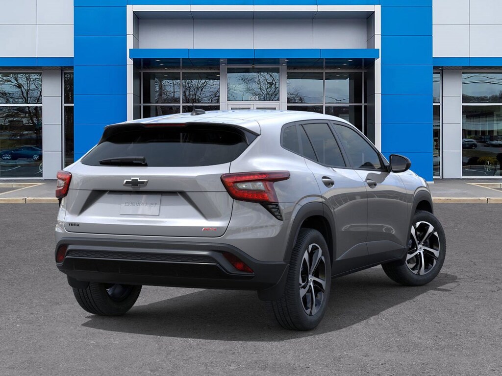 Gray 2026 Chevrolet Trax 1RS FWD 6-Speed Automatic ECOTEC 1.2L Turbo 2-Way Adjustable Front Head Restraints, 3.50 Final Drive Axle Ratio, 4 Speakers, 4-Speaker Audio System Feature, 4-Way Manual Front Passenger Seat Adjuster, 4-Wheel Disc Brakes, 6-Way Manual Driver Seat Adjuster, ABS brakes, Air Conditioning, Alloy wheels, AM/FM radio: SiriusXM, Auto High-beam Headlights, Brake assist, Bumpers: body-color, Cloth Seat Trim, Compass, Delay-off headlights, Driver Confidence Package, Driver door bin, Driver vanity mirror, Dual front impact airbags, Dual front side impact airbags, Electronic Stability Control, Emergency communication system: OnStar One Essentials, Exterior Parking Camera Rear, Front & Rear Custom Molded Splash Guards, Front & Rear Jet Black All-Weather Floor Liners (LPO), Front anti-roll bar, Front Bucket Seats, Front Center Armrest, Front reading lights, Front wheel independent suspension, Fully automatic headlights, Heated door mirrors, Heated Driver & Front Passenger Seats, Heated front seats, Heated steering wheel, Illuminated entry, Lane Change Alert w/Side Blind Zone Alert, Leather steering wheel, Low tire pressure warning, Mobile Service Plus, Occupant sensing airbag, Outside temperature display, Overhead airbag, Overhead console, Panic alarm, Passenger door bin, Passenger vanity mirror, Power door mirrors, Power steering, Power windows, Premium audio system: Chevrolet Infotainment 3, Radio data system, Radio: Chevrolet Infotainment 3 System w/AM/FM, Rear Cross Traffic Alert, Rear Park Assist, Rear window defroster, Rear window wiper, Remote keyless entry, Security system, SiriusXM Trial Subscription, Speed control, Split folding rear seat, Spoiler, Sport steering wheel, Steering wheel mounted audio controls, Tachometer, Telescoping steering wheel, Tilt steering wheel, Traction control, Trip computer, Variably intermittent wipers, Wheels: 18 Black-Painted Machined Aluminum, Wireless Apple CarPlay/Wireless Android Auto.