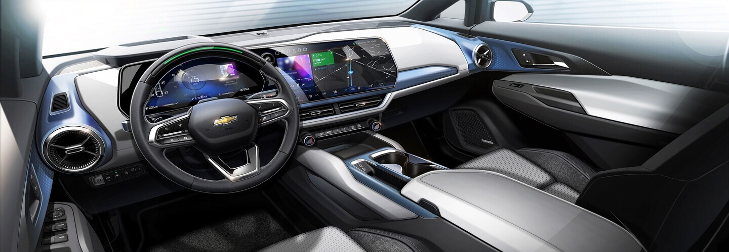 The interior of the Chevy Equinox EV offers a spacious and inviting atmosphere for both driver and passengers. With comfortable seating for up to five people, everyone can enjoy the journey. Choose between premium cloth or Evotex seat trim options to elevate your driving experience through Hopewell Junction. Ambient lighting creates a soothing ambiance. The available dual-zone automatic climate control ensures personalized comfort for all occupants.