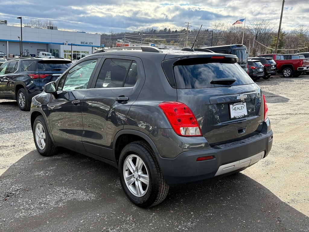 Cyber Gray Metallic 2016 Chevrolet Trax LT AWD 6-Speed Automatic ECOTEC 1.4L I4 SMPI DOHC Turbocharged VVT 16 Aluminum Wheels, 2-Way Manual Front Passenger Seat Adjuster, 3.53 Final Drive Axle Ratio, 4-Way Manual Driver Seat Adjuster, 4-Wheel Disc Brakes, 6 Speakers, 6-Speaker Audio System Feature, ABS brakes, Air Conditioning, All-Wheel Drive Chassis, Alloy wheels, AM/FM radio: SiriusXM, Brake assist, Bumpers: body-color, Compass, Delay-off headlights, Deluxe Cloth Seat Trim, Driver door bin, Driver vanity mirror, Driver's Seat Mounted Armrest, Dual front impact airbags, Dual front side impact airbags, Electronic Stability Control, Emergency communication system: OnStar Guidance, Exterior Parking Camera Rear, Front anti-roll bar, Front Bucket Seats, Front Bucket Seats w/Driver Power Lumbar, Front License Plate Bracket, Front reading lights, Front wheel independent suspension, Fully automatic headlights, Heated door mirrors, Illuminated entry, Knee airbag, Low tire pressure warning, Occupant sensing airbag, Outside temperature display, Overhead airbag, Panic alarm, Passenger door bin, Passenger vanity mirror, Power door mirrors, Power steering, Power windows, Preferred Equipment Group 1LT, Premium audio system: Chevrolet MyLink, Radio data system, Radio: Chevrolet MyLink AM/FM Stereo, Rear seat center armrest, Rear side impact airbag, Rear window defroster, Rear window wiper, Remote keyless entry, Roof rack: rails only, Security system, SiriusXM Satellite Radio, Speed control, Speed-sensing steering, Split folding rear seat, Spoiler, Steering wheel mounted audio controls, Tachometer, Telescoping steering wheel, Tilt steering wheel, Traction control, Trip computer, Variably intermittent wipers.