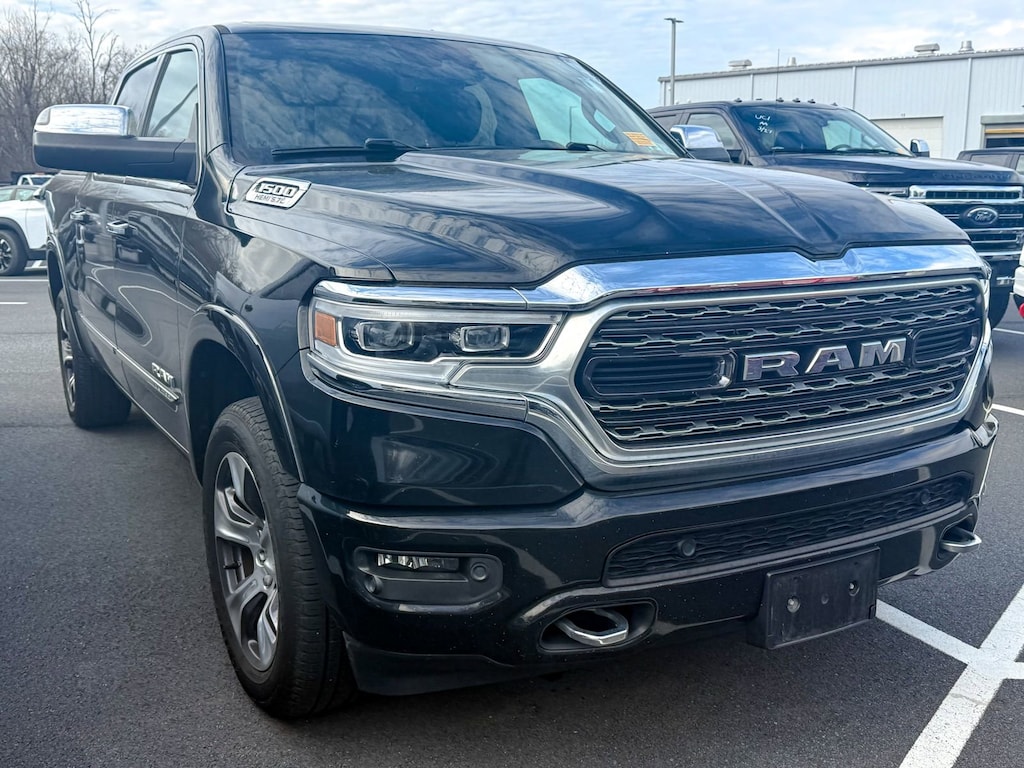 Diamond Black Crystal Pearlcoat 2019 Ram 1500 Limited 4WD 8-Speed Automatic HEMI 5.7L V8 Multi Displacement VVT Dome Dual LED Reading Lamp, Dual-Pane Panoramic Sunroof, LED Dome/Reading Lamp, Power Chrome Trailer Tow Mirrors, Trailer Brake Control, Trailer Tow Group, Trailer Tow Mirrors, 1-Yr SiriusXM Guardian Trial, 10 Speakers, 12 Touchscreen Display, 33 Gallon Fuel Tank, 4-Wheel Disc Brakes, 48V Belt Starter Generator, ABS brakes, Adjustable pedals, Air Conditioning, Alloy wheels, AM/FM radio: SiriusXM with 360L, Anti-Spin Differential Rear Axle, Apple CarPlay, Apple CarPlay/Android Auto, Audio memory, Auto High-beam Headlights, Auto-dimming door mirrors, Auto-dimming Rear-View mirror, Auto-leveling suspension, Automatic temperature control, Body Color Bumper Group, Bodyside moldings, Brake assist, Bumpers: chrome, Compass, Delay-off headlights, Disassociated Touchscreen Display, Driver door bin, Driver vanity mirror, Dual front impact airbags, Dual front side impact airbags, Electronic Stability Control, Emergency communication system: SiriusXM Guardian, Engine Block Heater, Front anti-roll bar, Front Bucket Seats, Front Center Armrest w/Storage, Front dual zone A/C, Front fog lights, Front reading lights, Front wheel independent suspension, Fully automatic headlights, Garage door transmitter, Genuine wood console insert, Genuine wood dashboard insert, Genuine wood door panel insert, Google Android Auto, GPS Antenna Input, GPS Navigation, HD Radio, Heated door mirrors, Heated front seats, Heated rear seats, Heated steering wheel, Illuminated entry, Integrated Center Stack Radio, Leather steering wheel, Limited Level 1 Equipment Group, Low tire pressure warning, Memory seat, Navigation System, Occupant sensing airbag, Outside temperature display, Overhead airbag, Overhead console, Panic alarm, ParkView Rear Back-Up Camera, Passenger door bin, Passenger vanity mirror, Pedal memory, Power door mirrors, Power driver seat, Power passenger seat, Power steering, Power windows, Premium Leather Trimmed Bucket Seats, Protection Group, Quick Order Package 25M Limited, Radio data system, Radio: Uconnect 12 w/Navigation, Rain sensing wipers, Rear anti-roll bar, Rear seat center armrest, Rear step bumper, Rear window defroster, Remote CD player, Remote keyless entry, Security system, SiriusXM Satellite Radio, SiriusXM Traffic Plus, SiriusXM Travel Link, SiriusXM w/360L, Speed control, Split folding rear seat, Steering wheel mounted audio controls, Tachometer, Telescoping steering wheel, Tilt steering wheel, Traction control, Trip computer, Turn signal indicator mirrors, USB Host Flip, Variably intermittent wipers, Ventilated front seats, Voltmeter, Wheels: 20 x 9 Polished w/Inserts, Wheels: 22 x 9 Polish/Painted w/Inserts, One Owner, Dome Dual LED Reading Lamp, Dual-Pane Panoramic Sunroof, LED Dome/Reading Lamp, Power Chrome Trailer Tow Mirrors, Trailer Brake Control, Trailer Tow Group, Trailer Tow Mirrors.